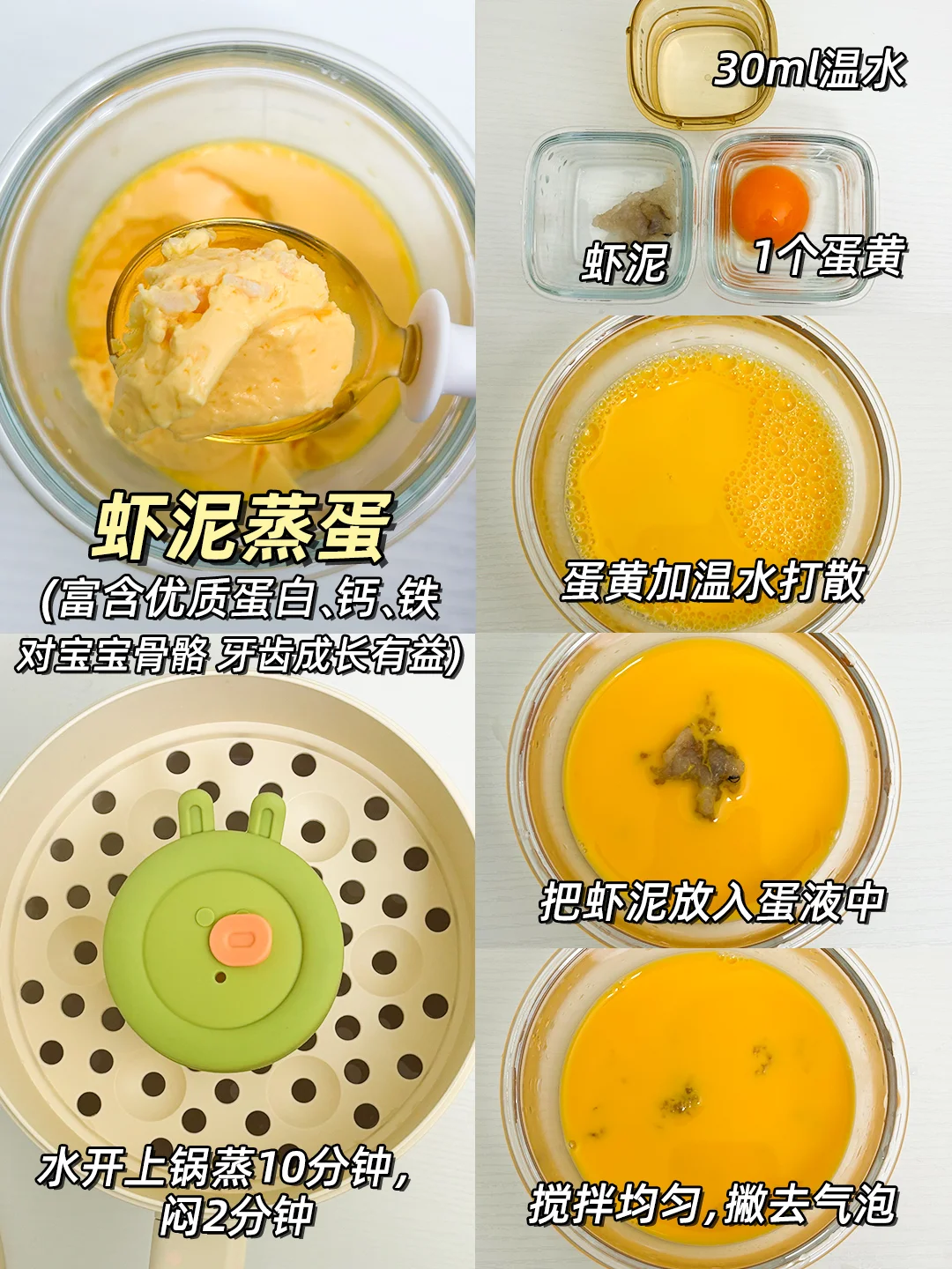 🔸虾泥蒸蛋(富含蛋白、钙、铁)
