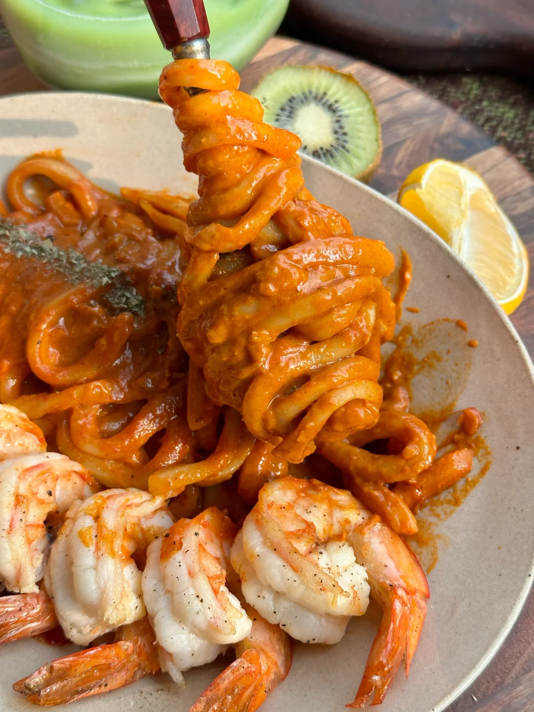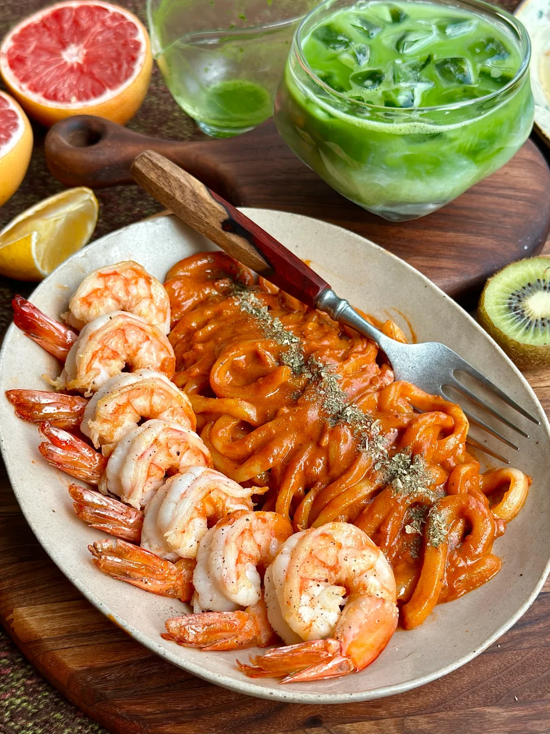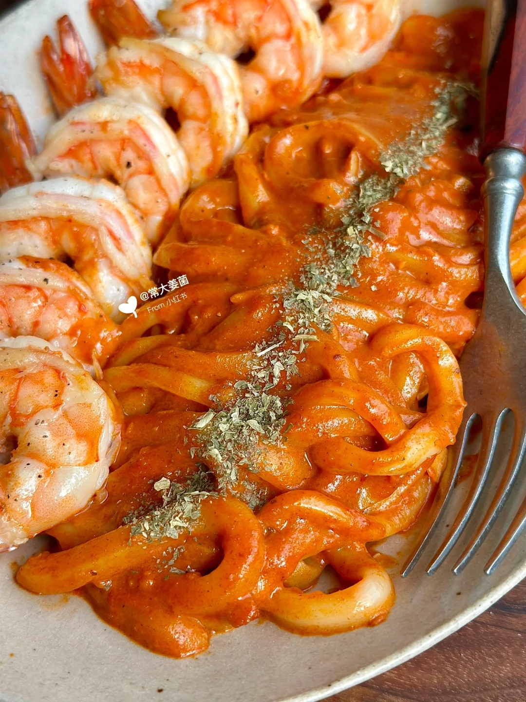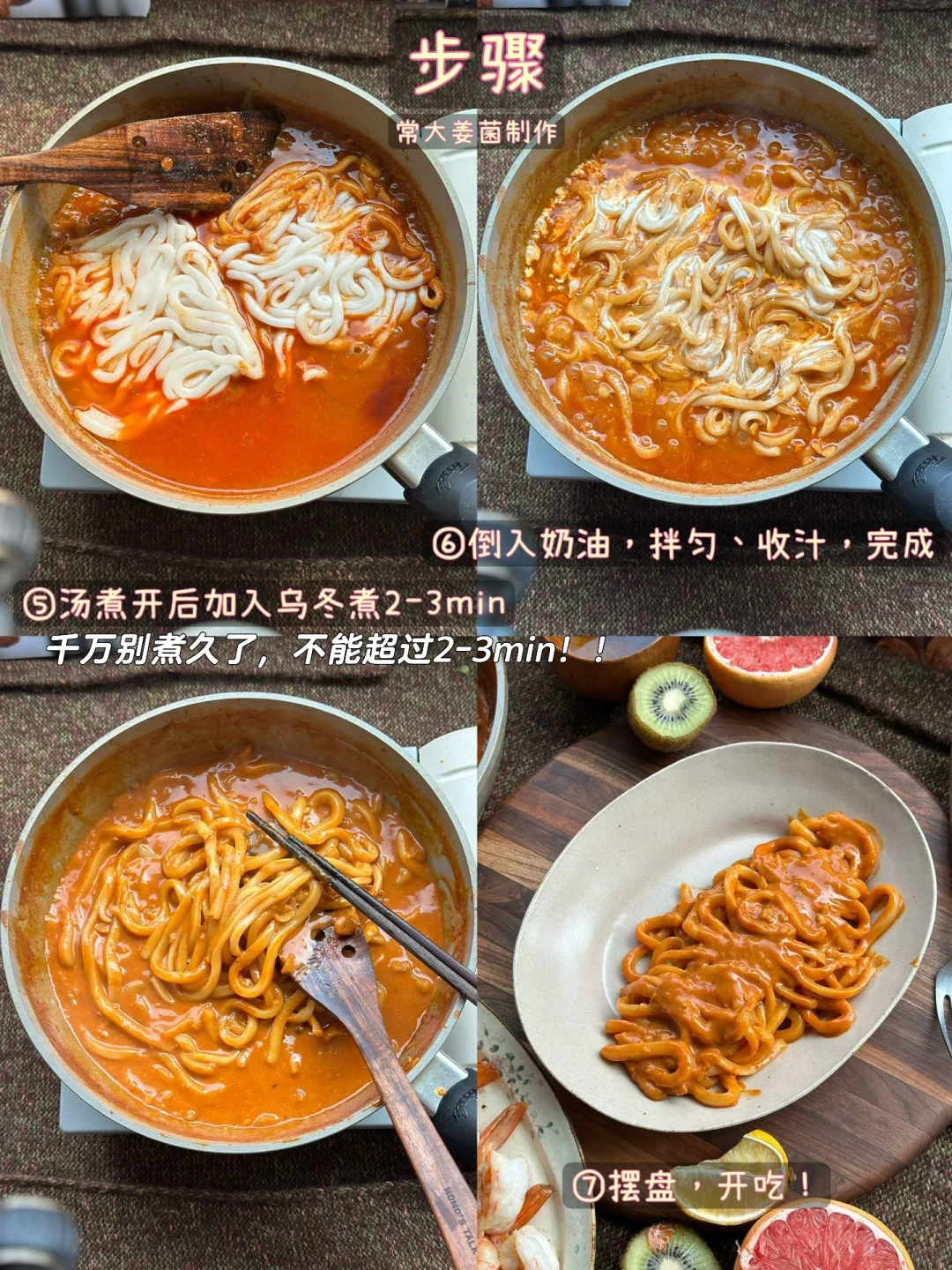 天儿一冷就想吃乌冬! 这款乌冬官方版叫《玫瑰乌冬面》 实际就是加了奶油的辣乌冬,一点不辣哦!不是刺激性的辣~爆炸无敌好吃到停不下来!😅 ⚠️ 记得乌冬不要煮过头,筋斗儿点的好吃!