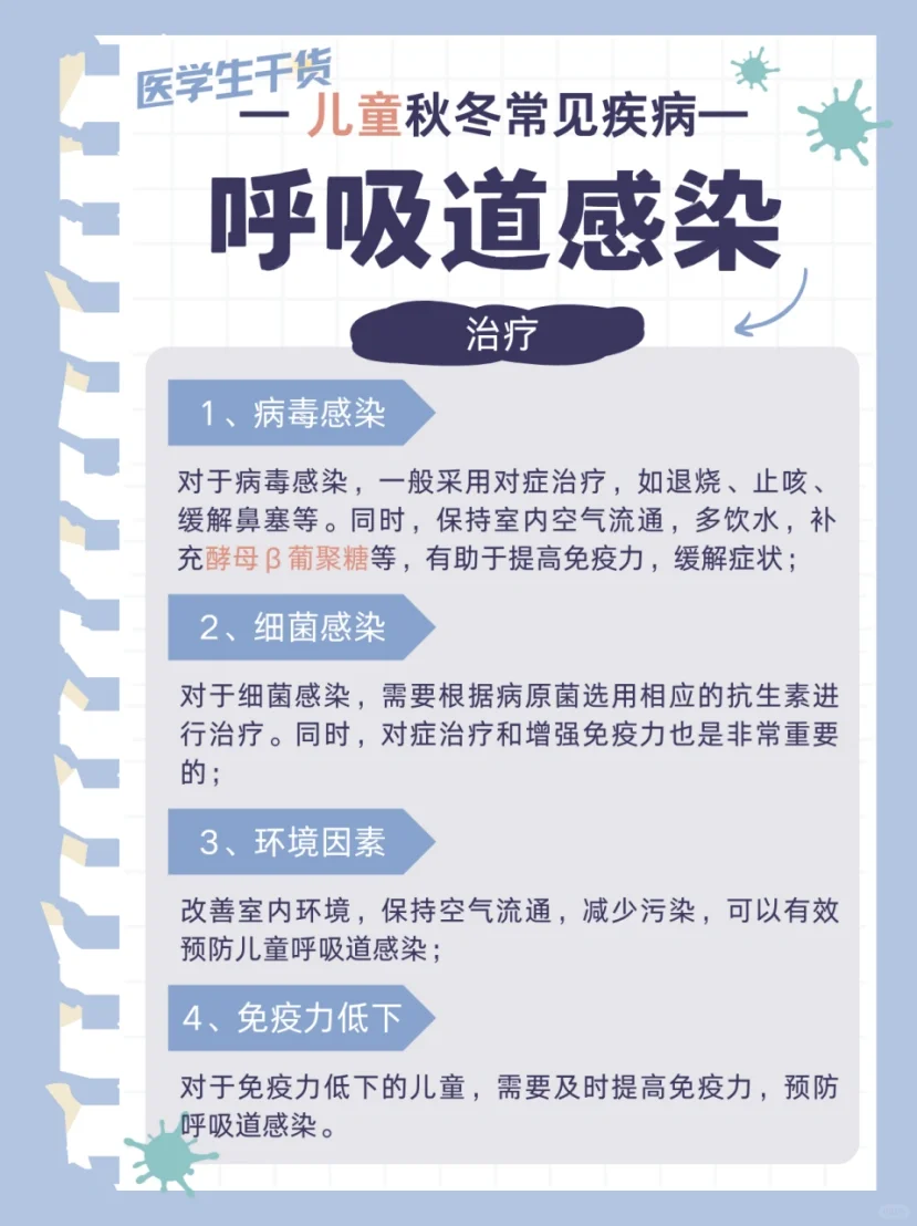3、环境因素:改善室内环境,保持空气流通,减少污染,可以有效预防儿童呼吸道感染;