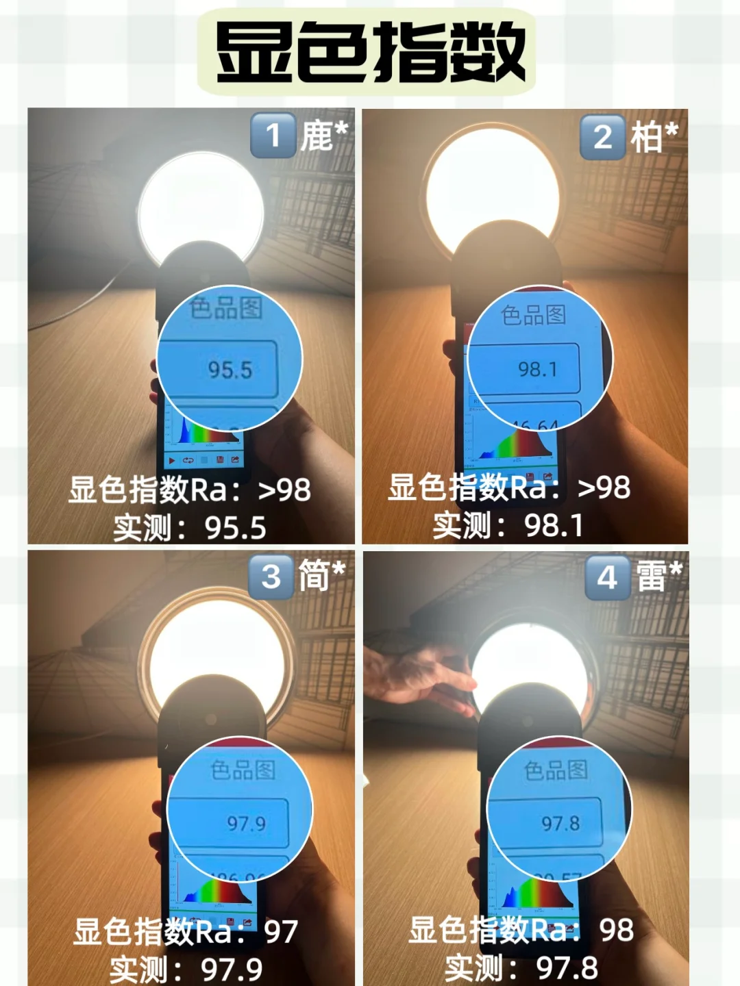 常见的Ra、R1~R5等,都是灯显色能力的关键,值越接近100,色彩的还原度越高