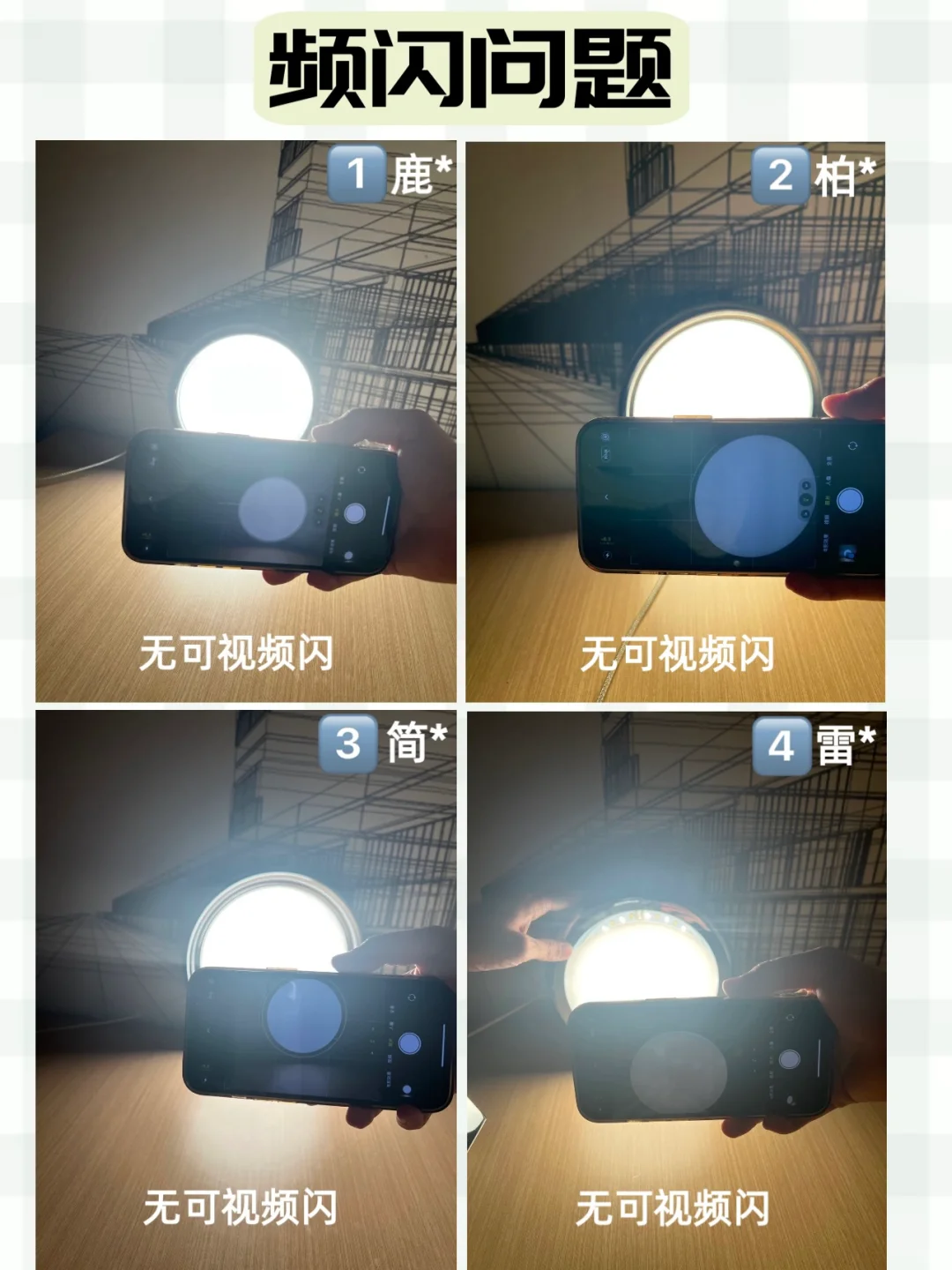 频闪会无形中造成视觉疲劳,检测办法是手机对着光源,看是否明暗闪烁