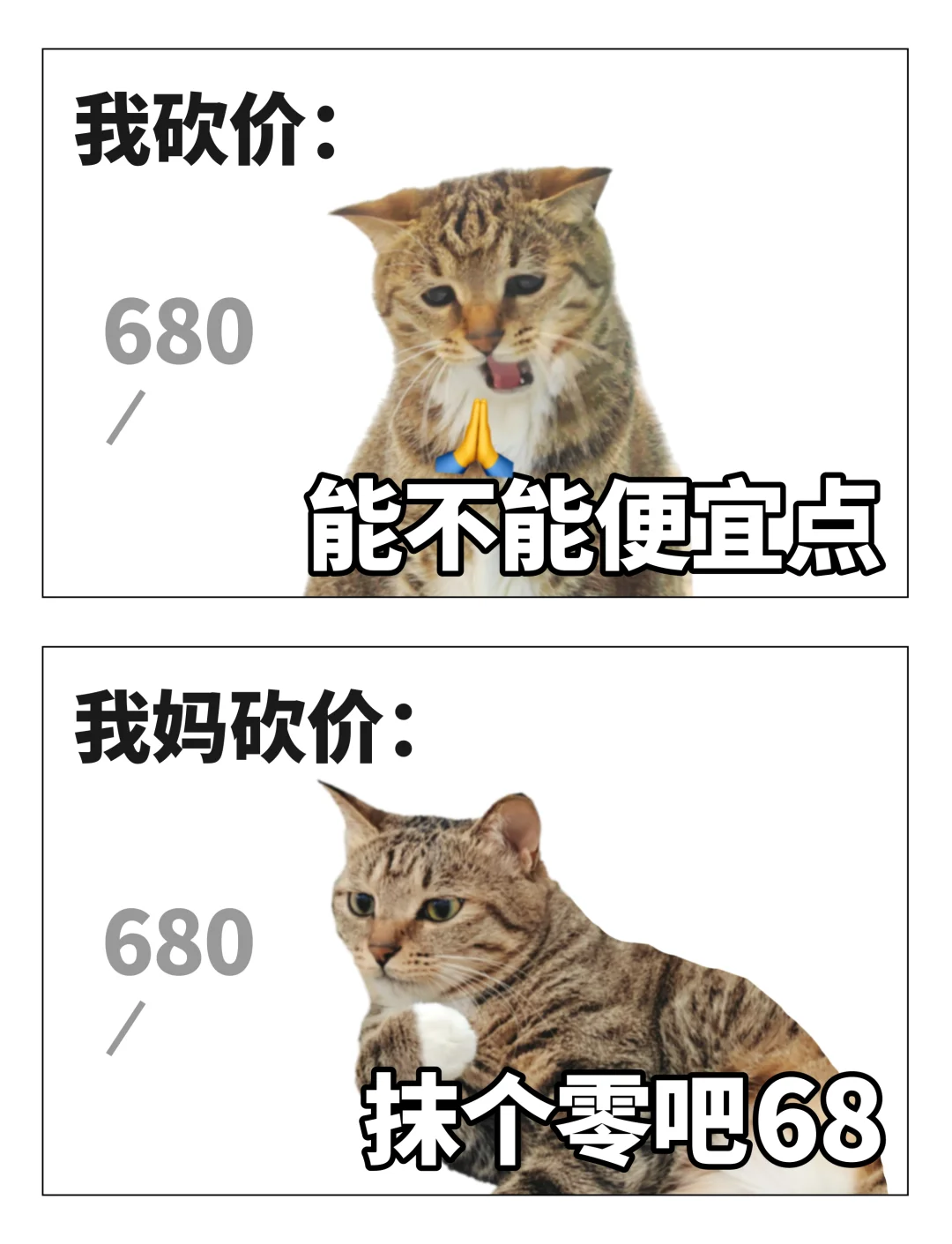 我砍价:少一块钱行吗 我妈砍价:一块钱行吗 老板:680 我妈:抹个零吧68 我:。。。牛 买东西不会还价?别担心!14-19号🐱🍑买家电,国补20%+15%折扣+8%惊喜券,超多折扣三重叠加超划算~🔍【家电抢先购】即可体验补贴优惠!妈妈再也不用担心我不会砍价啦~