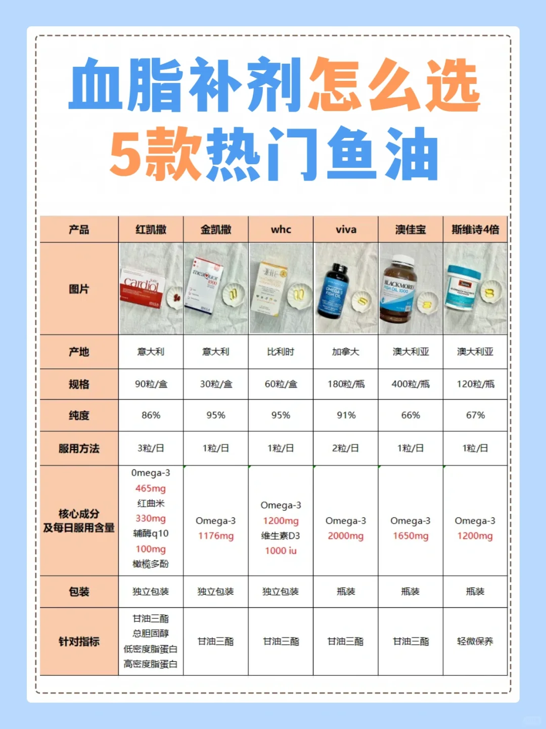 这次选了市面上比较热门的5款鱼油给大家参考👇👇