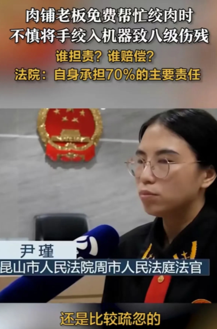 “糊涂官断糊涂案!”江苏昆山,男子开了一家饭店,他拿着300斤的肉去肉店,让老板给自己绞成肉馅,没想到,老板不小心把手绞入机器。导致8级伤残,老板将男子告上法庭,法院的判决或引人争议。 张强毕业于一所烹饪学校,这在父母的眼中,跟那些不学无术的人一样没什么区别,他们每天都说他是个败家子,浪费家里的钱学了这个东西。 他也不反驳,毕竟就在目前看来,父母说的也没什么问题,但是他相信不久的将来,自己一定会成功。 毕业后他就来到了昆山,这边属于工业区,员工食堂又比较单一,他就在附近开了一家饭店。 要么说有准备的人能抓住机会,他的饭店也就做做家常菜,价格不贵,味道也十分正宗,吸引了附近很多的工人过来吃饭。 他也因此赚到了人生中的第一桶金,但是意外也随之来临。 他们店里卖的比较好的一个是猪肉大葱馅的饺子,还有一个就是红烧狮子头。 但要做好这两个,肯定是需要本地的土猪肉,他便来到了平日里经常去的那家肉铺。 他在门口喊道:“老李,来三百斤猪肉,要挑瘦一点的啊,都老熟人了。” 过不多时,里面走出来一个中年男子,也就是这个肉铺的老板李华。 当听到要这么多肉的时候,他连眼皮都没抬一下,似乎早已司空见惯,他问了张强一句,是不是还要做肉馅,在得到肯定的答复后,他又进去了。 闲得无聊的张强在外面刷着视频呢,突然店里传来了一声惨叫,听闻此声,他连忙冲了进去。 也就看到那样悲惨的一幕,李华的手被卷进了绞肉机里,他连忙拉断了电闸,这才保住了他的手。 原来,就在刚才启动机器的时候,他没有注意到自己的衣服,结果袖子被卷了进去,他极力挣脱,但是已经来不及了,整个手掌都被吸了进去。 就算是如此,摊主的手也是鲜血淋漓,张强见状,连忙将其送去最近的医院接受治疗,虽然性命无忧,但是右手的手指却是少了一根。 这对于一个以卖肉为生的老板来说,无疑是致命的。 事后,摊主将一切责任都甩在了张强的身上,要不是对方要绞肉馅,自己就不会启动机器,更不会把手卡进去了,要求对方给予赔偿。 张强自然是不能接受,双方也因此闹到了法庭之上。 在法庭上,张强认为,对方作为肉铺老板,应该对机器更加的熟悉,所以是有自己保障自己安全的能力的,这件事情自己怎么说都没有责任。 对方却表示,绞肉服务虽然是肉铺提供的,这个量远比常人购买的多,所以危险是张强的要求导致的,因此应该承担责任。 法院经过慎重的考虑后,做出了判决,法官认为,虽然张强是顾客,但是应当提醒老板注意安全,所以这件事情需要承担次要责任。 最终判决张强承担三成的责任,并赔偿19万元,但是这样的判决结果却引起了关注此事网友们的不满。 他们认为,作为肉铺的老板,对店内机器的使用起码要熟悉,如果连每天都要用的设备都用不好,凭什么开店呢? 而且买这个机器是过来绞肉用的,绞手算什么事? 像这种情况,完全是因为自己的大意才导致的,那么责任就应该归他一人。 此外,还有一些网友指出,如果要对这起事件进行追责的话,那么首先要找到厂商,为什么绞肉机会把手卡进去,手既然能卡进去,就代表这个机器不安全,必须停产。 不过针对此事,一些律师也是提出了自己的看法。 虽然张强在这起事故中没有直接过错,但是绞肉机操作是高风险的行为,一句话或许就能让对方抱有戒备,悲剧或许就能避免了。 这起事件到这里也就结束了,但是带给我们的思考却是要记在心里。 无论是什么行业,一定要注意安全,不管再怎么熟悉,多注意安全永远都不是一件坏事,而且都是成年人了,要学会对自己的行为负责。 每次出了事故都想将责任分到其他人头上,你可能压力是减小了,但是对于别人来说,这就是无妄之灾。 所以我们要认真负责的做好每一件自己应该做的事情,避免类似的事情再次发生。