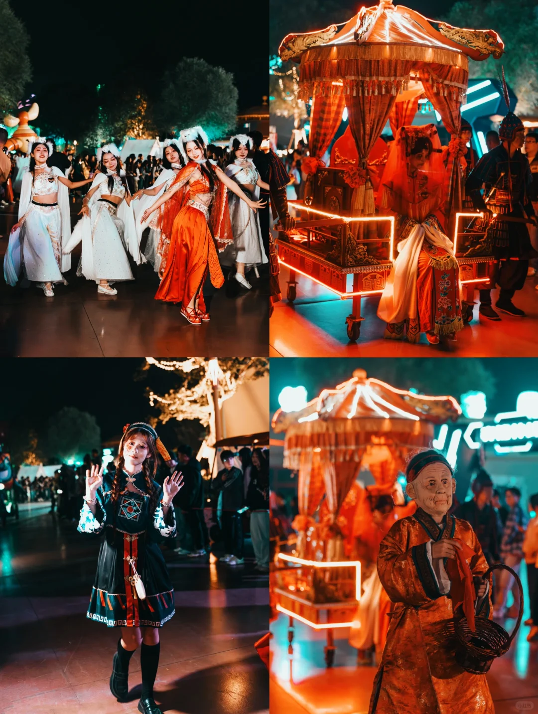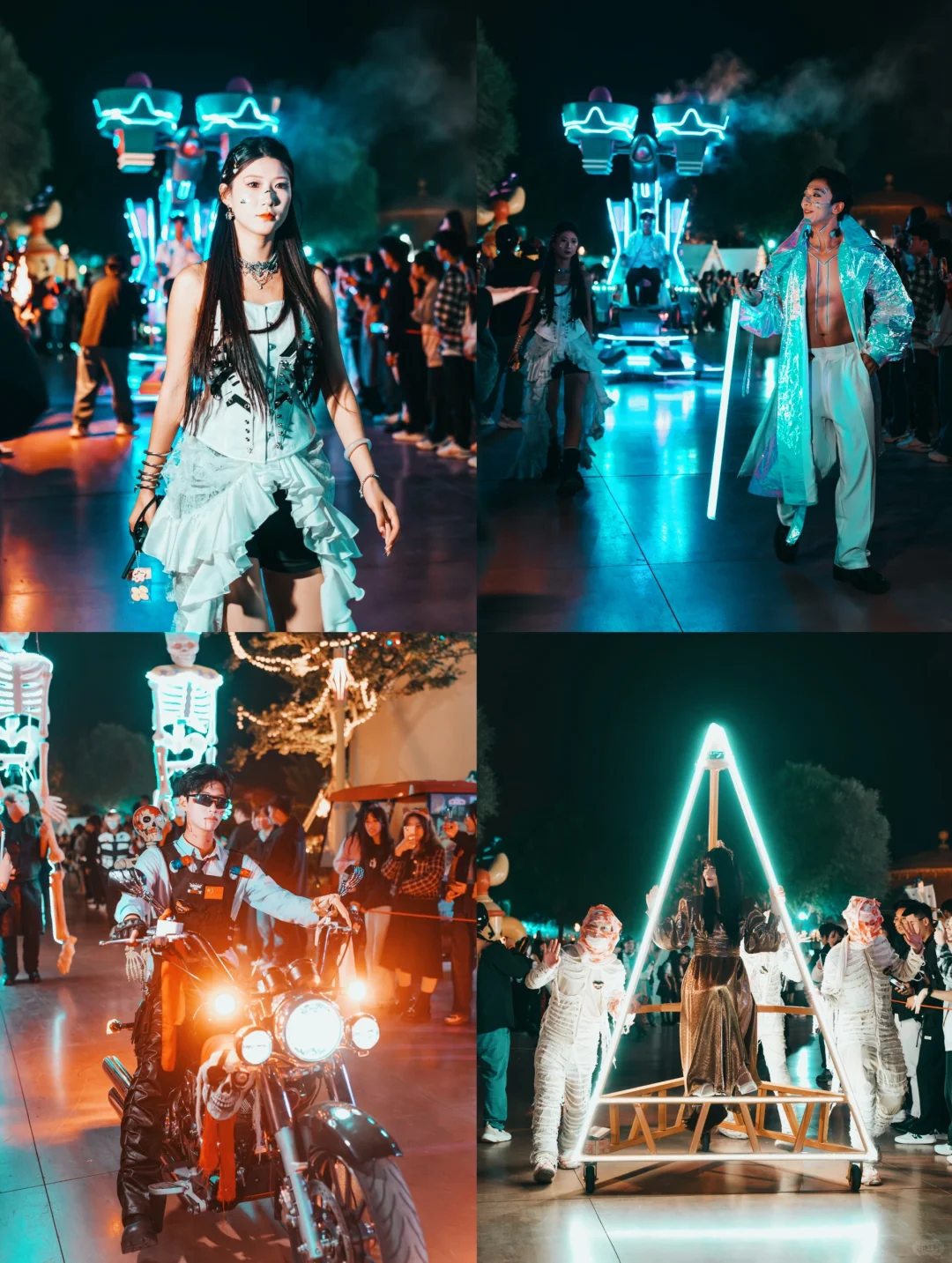 各类角色盛装出席,绚丽灯光花车美女鬼怪表演,带你一秒入戏