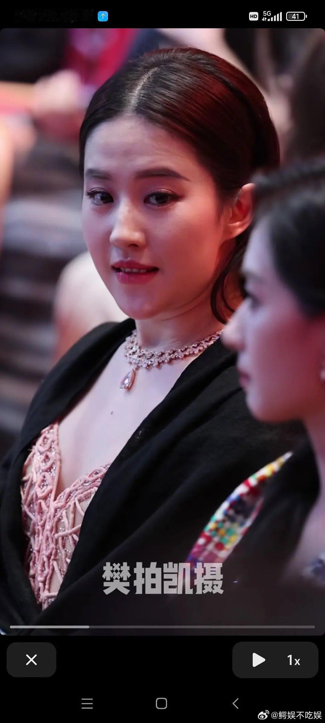 刘亦菲喝醉酒微醺的状态被拍到,脸上已经泛起了红晕,被拍到后眼神微怒