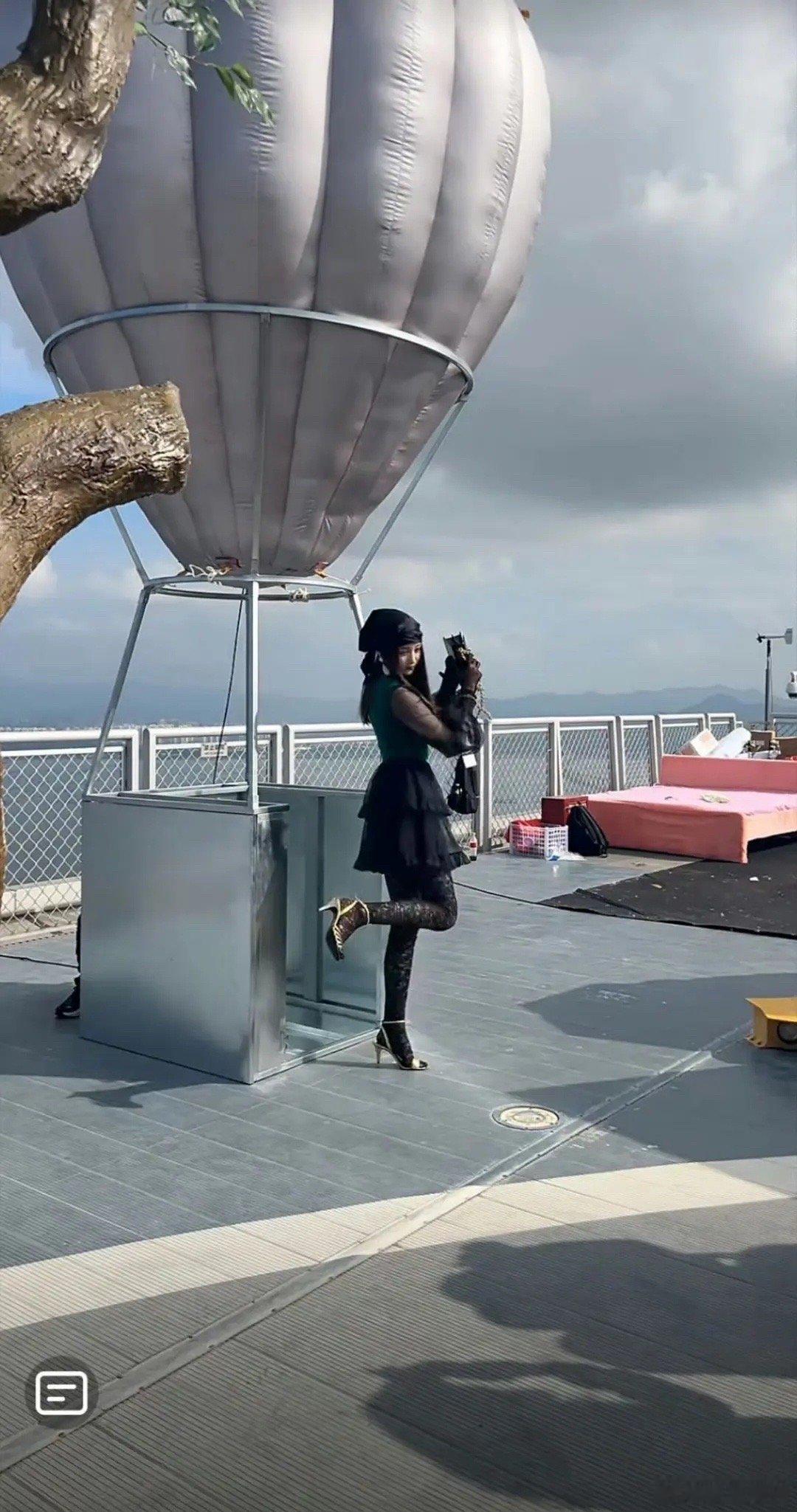 张天爱跟素人合影,胯真的好宽,大宅院似的