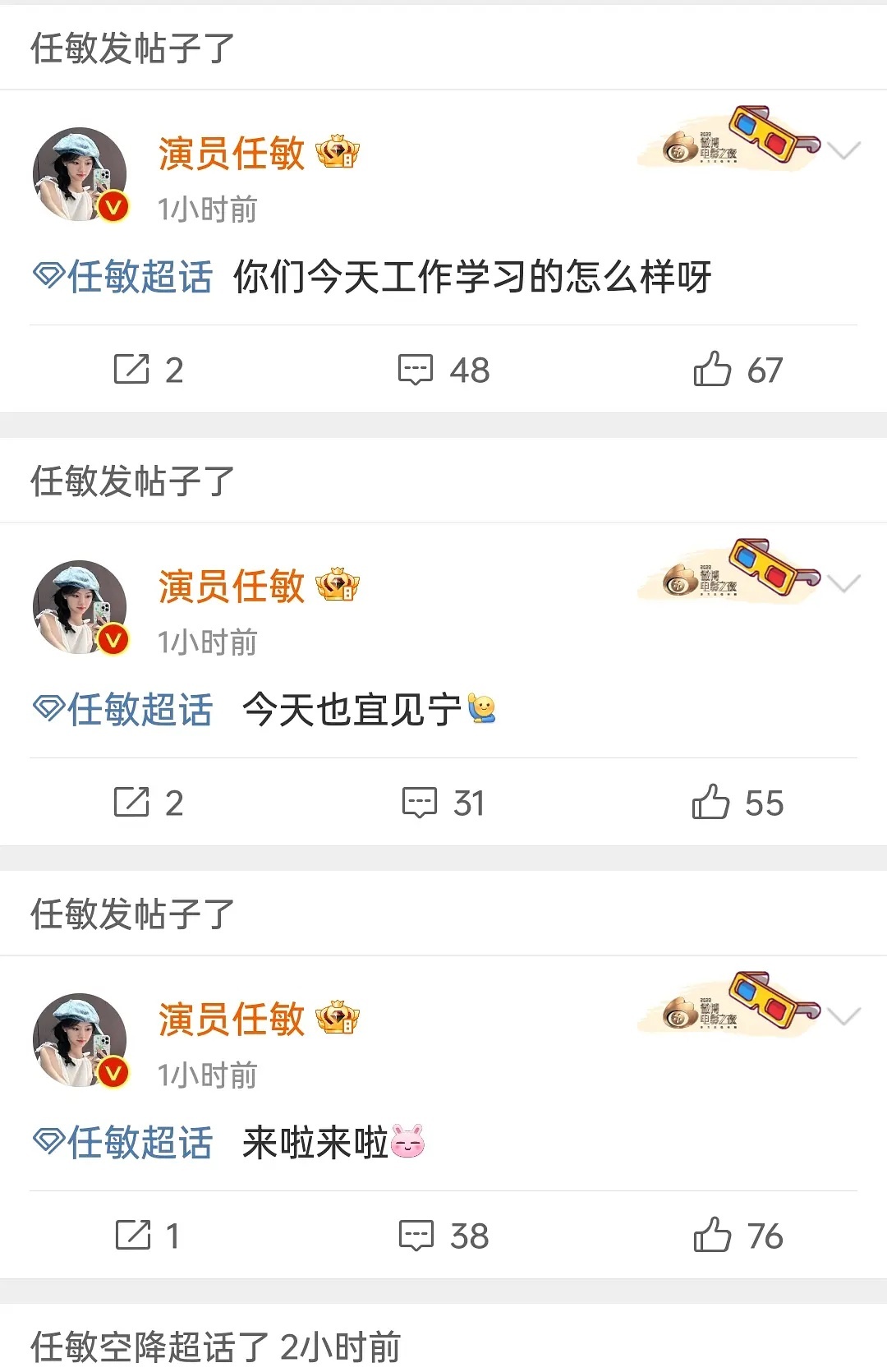任敏空降超话,每条回复不过百,怎么能一根粉都吸不到[哆啦A梦害怕]
