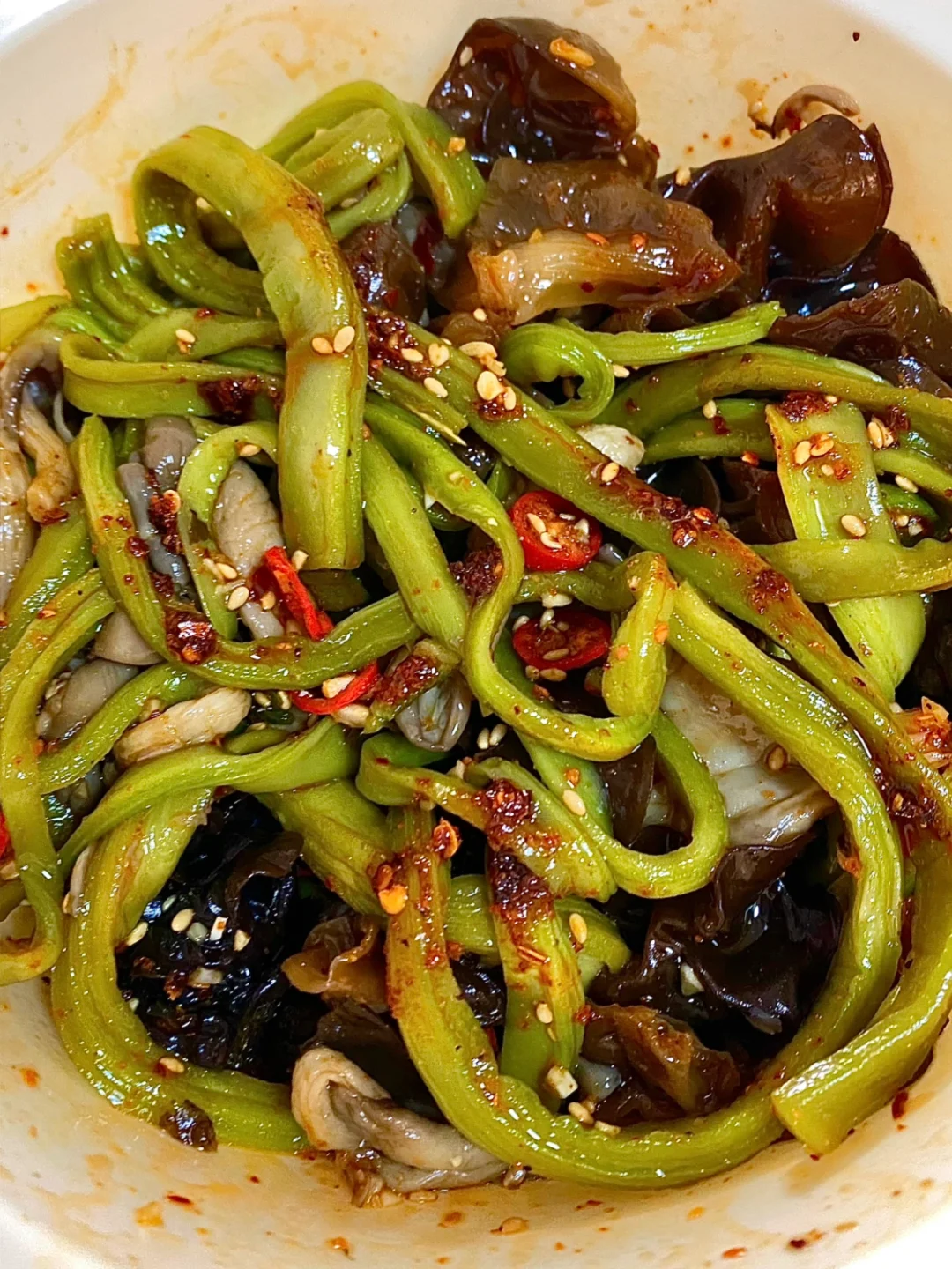 - 我妈妈今晚凉拌的贡菜蘑菇木耳 噼里啪啦嘎嘣脆!巨脆巨香巨好吃😭😭 酸辣爽口,低卡解压