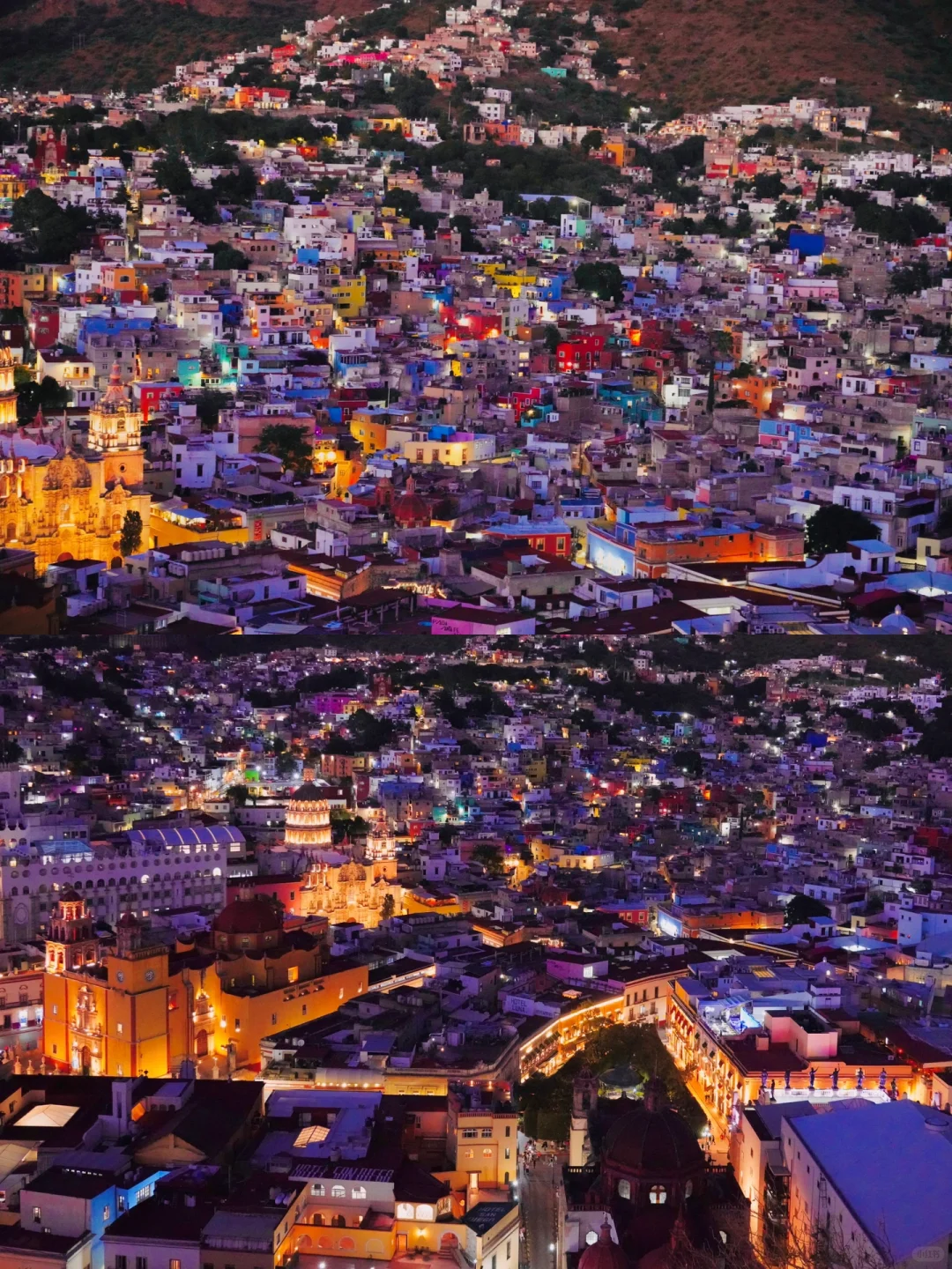 墨西哥瓜纳华托,距离国内一万三千公里,为了寻梦环游记里的画面,我飞了将近20个小时,虽然舟车劳顿,但一切都值得。 站在瓜纳华托的制高点皮皮山上,整个古城的夜景如童话世界般展开,仿佛真的进入了电影COCO里的亡灵世界。 当然,真实的世界在色彩上与动画还是有一定的差距,如果想要更接近于动画的色彩,不妨选在日落后的蓝调时刻取景。 在修图时可以适当调高画面色调、提高饱和度、降低对比度、调高阴影、提高色温。按照这个思路微调下就有动画质感了。