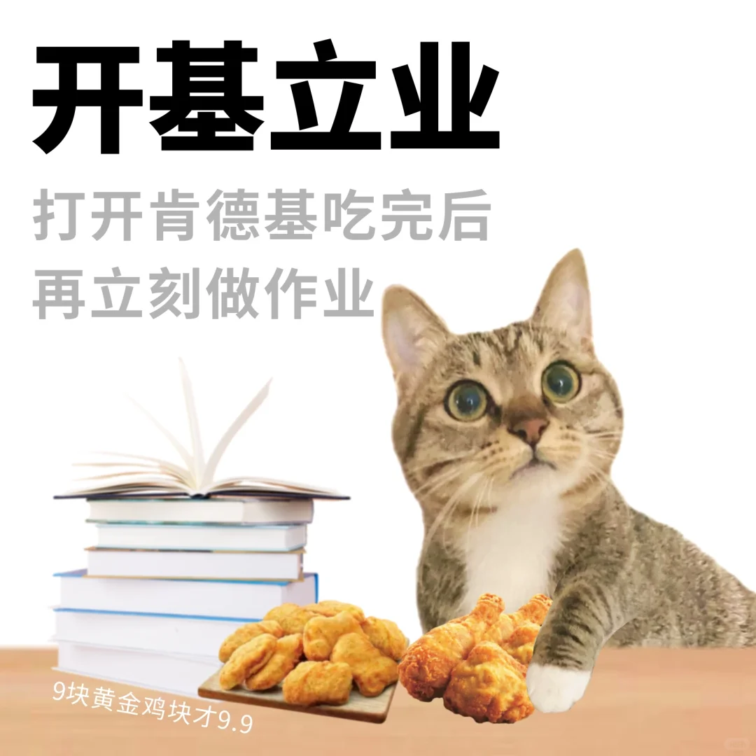 闻基起五:闻到肯德基就去找朋友要钱,起码五十。 感恩带德:感谢每一个带我去吃肯德基的人。 开基立业:打开肯德基吃完后再立刻做作业。 暗藏炫基:偷偷藏起来独自炫肯德基。 我就不信肯德基有这么大的魔力,4月18日疯四9.9黄金鸡块9块,19.9山茶花乌龙双旋圣代2个,19.9热辣香骨鸡9块&爆汁三柠茶2份,19.9热辣香骨鸡15块,29.9黄金鸡块30块,29.9吮指原味鸡4块,29.9秘汁全鸡/川香盐帮秘汁全鸡1只,这么划算!v我50,我去替你们尝尝看!