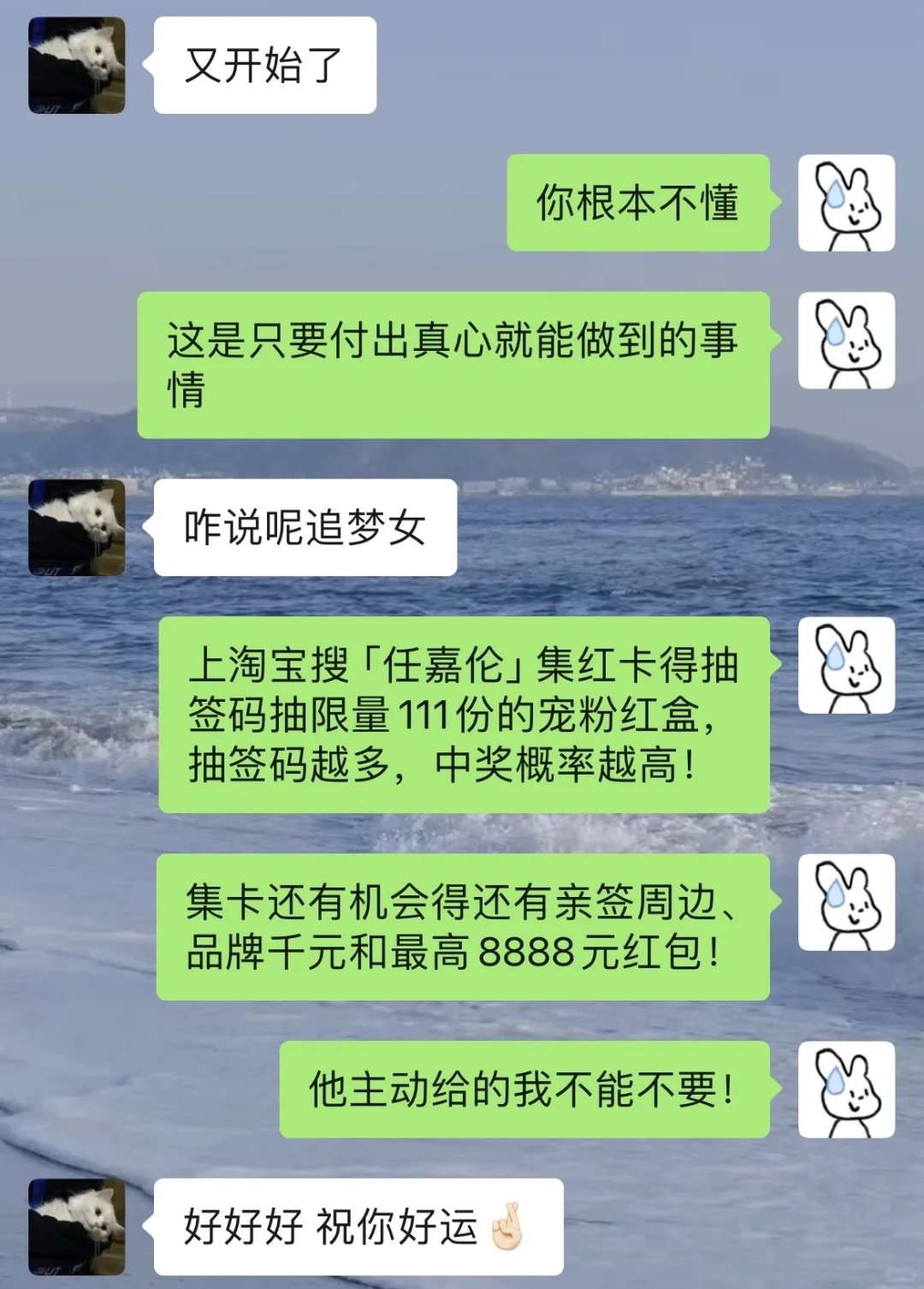 分享一些小开心 情路之间不太正经的聊天哈哈哈 很爱我的男朋友也很爱我的大明星嘻嘻 🍑宝这次放大招了 重磅打造的全明星双11限定超红礼 作为一个追星女孩真的爱了 集红卡就有机会抽到明星的限定宠粉红盒 还有明星亲签周边 品牌千元礼和最高8888元等超多惊喜好礼 抽签码越多中奖率越高哦 一起上🍑搜“天猫全明星” 集卡赢好礼叭