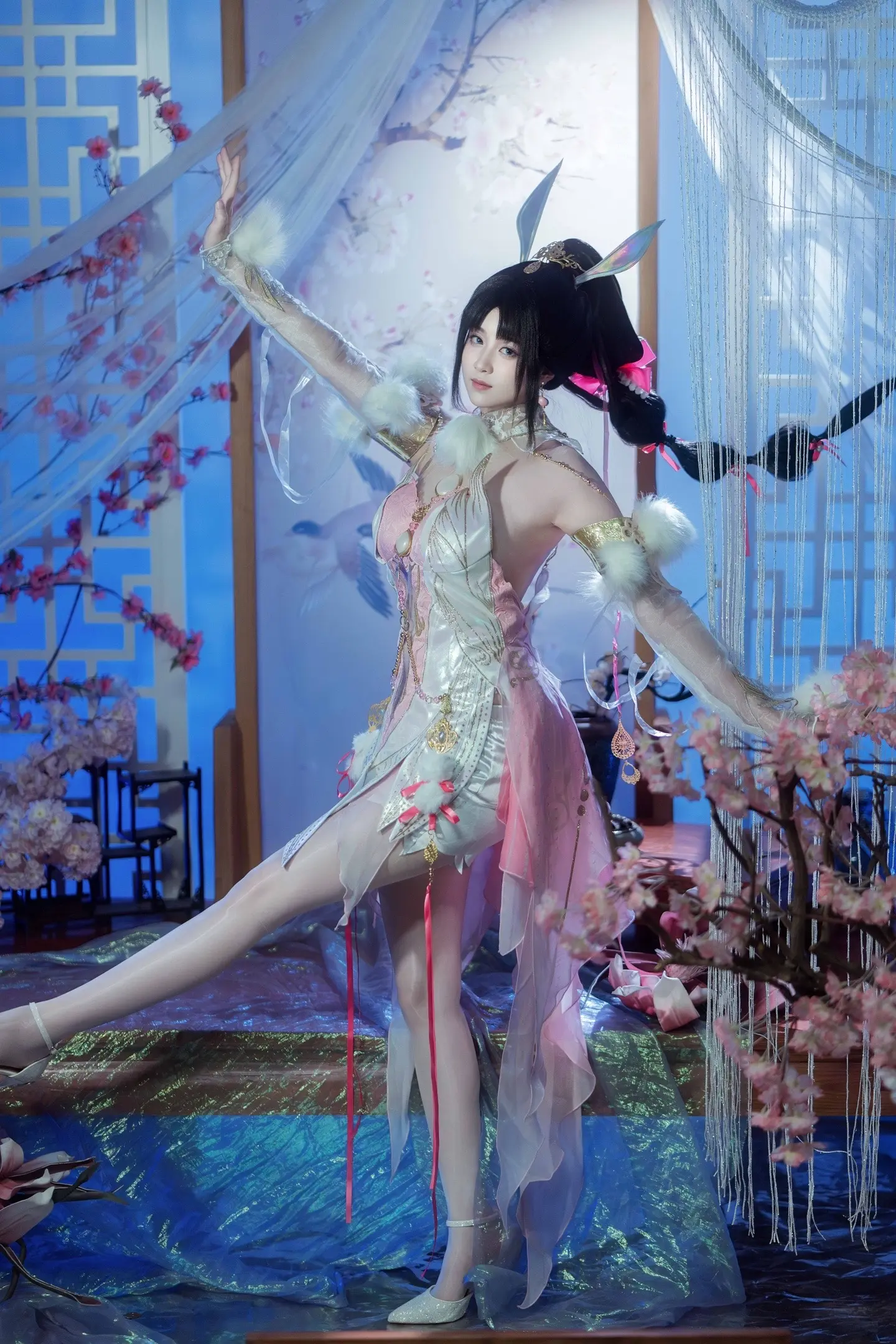 听夜风吹笛,花落为你弹琴