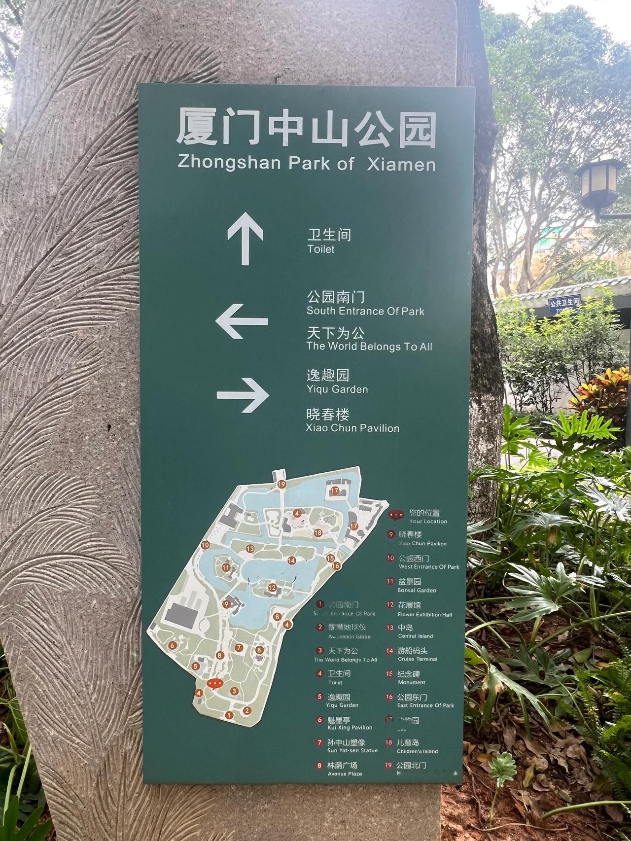 水畔楼台翠色浓,绿树成荫映碧空。这就是厦门的中山公园,公园里面绿树掩映,鲜花盛开,湖水荡漾,小桥流水,楼台亭阁皆是美景! 最值得一提的是这里是很多老年人休闲娱乐的场所,很多老人围坐在一起品着茶水,打着牌,来打发时间,看着他们自在的生活我都觉得好羡慕啊! 在这个公园里,不仅有名人孙中山塑像,有中山公园主题馆,主题馆里讲述了这个公园从提议建设到细节规划到建设过程,主题馆还有一个亮点就是弘一法师还创作了厦门中山公园第一届运动大会会歌,慷慨激昂。 在公园一个不起眼的角落你还会发现一个有趣的地方,还隐藏着一处动物园,不要门票,有各种猴子和鸟类。对喜欢观看动物的人来说真的是很好的去处! 公园还比较人性化,景点众多,但是也考虑到游玩中人们休息方便,到处都有椅子可以坐,来这里休闲放松带点食物携一家老小来这里游玩放松,真是无比惬意!