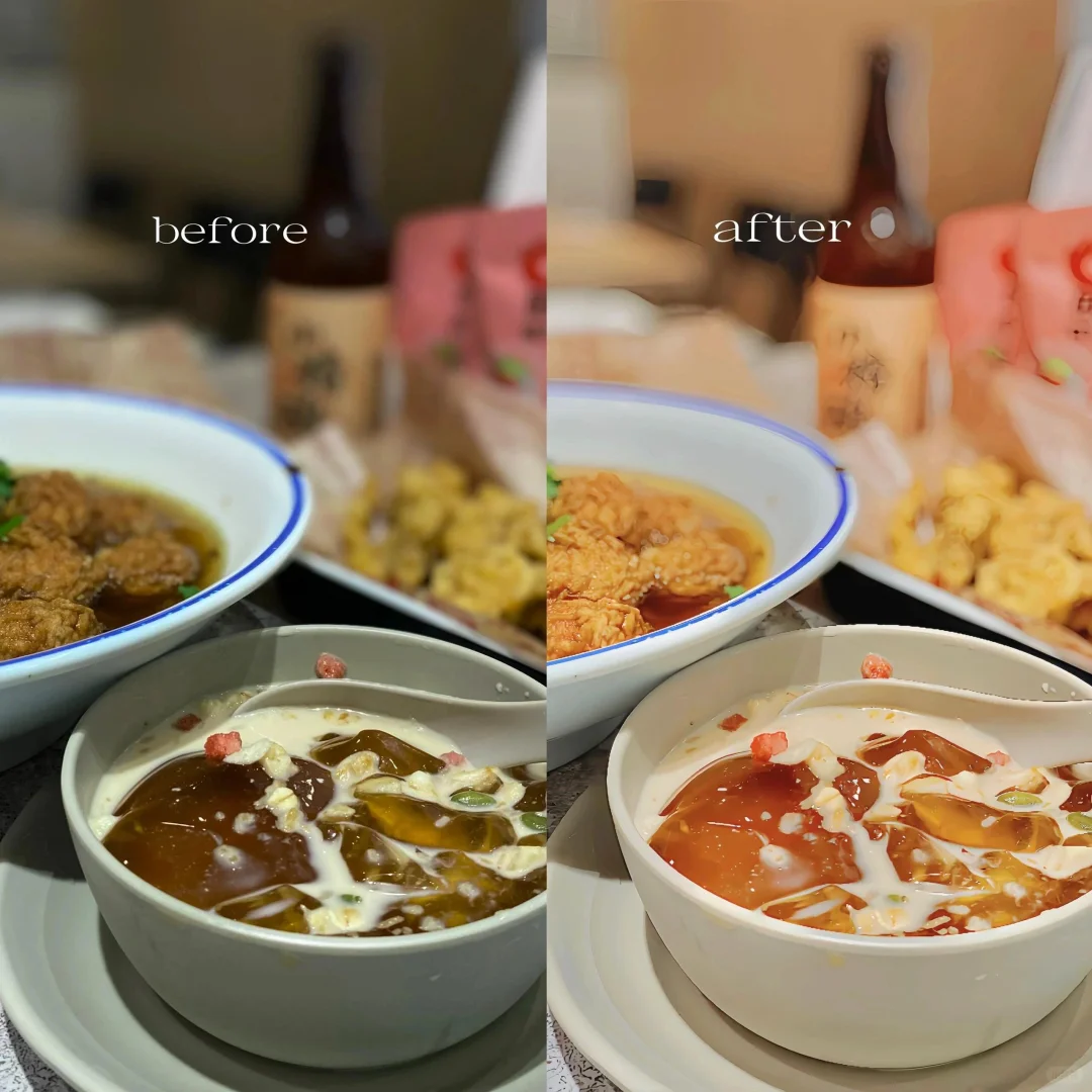 好久没吃小面了 碳水快乐[皱眉R] and这个滤镜简直有漫画食欲感 💛拍摄:iPhone 💛滤镜:🌟图 滤镜一美食一蜜桃乌龙 曝光一15 光感+40 高光一10 阴影+20 对比度一10 色温+5 锐化+ 60 参数不是固定的 根据实际情况调整 大家注意数据高一点的参数即可 💛质量修复: app(wink) 针对锐化过后建议用一次质量修复 质量修复后图片会比较清晰柔和 ~~~~~~~~ ❤️主页会持续更新构图和滤镜❗️