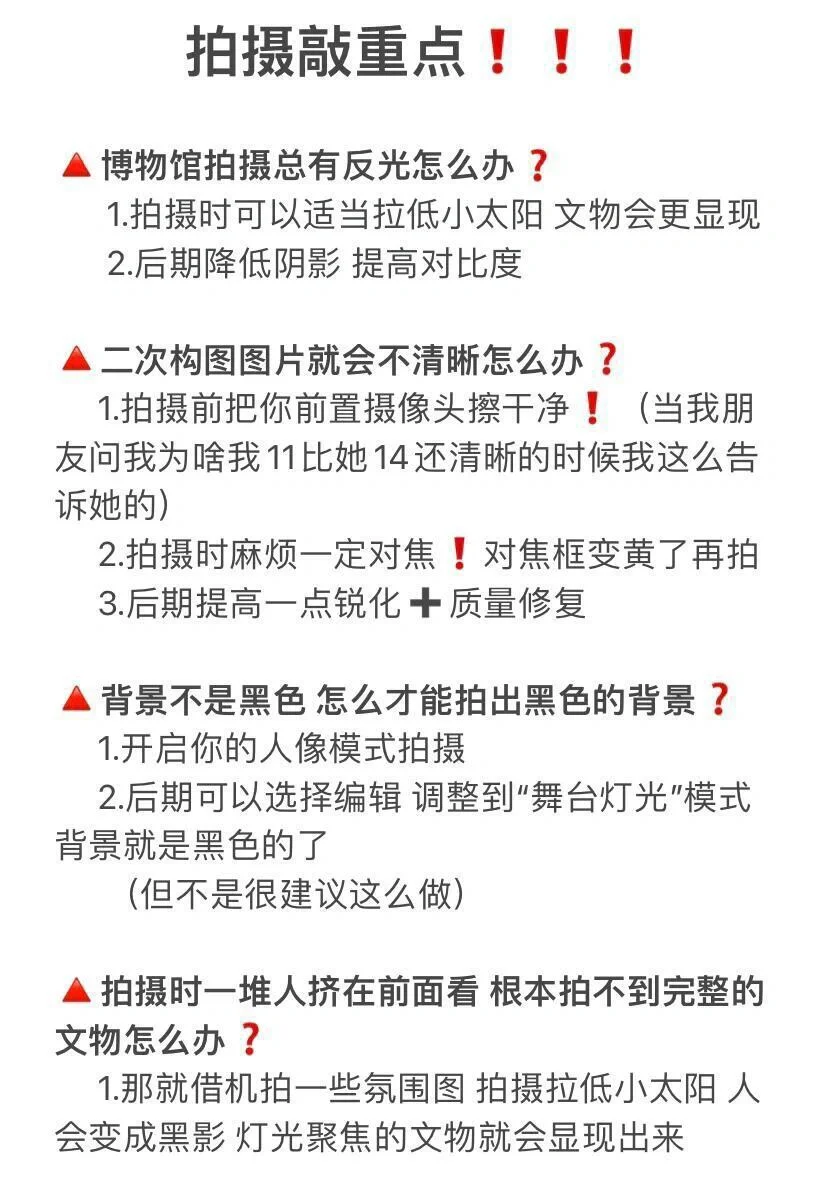 1⃣️那就借机拍一些氛围图 拍摄拉低小太阳 人会变成黑影 灯光聚焦的文物就会显现出来