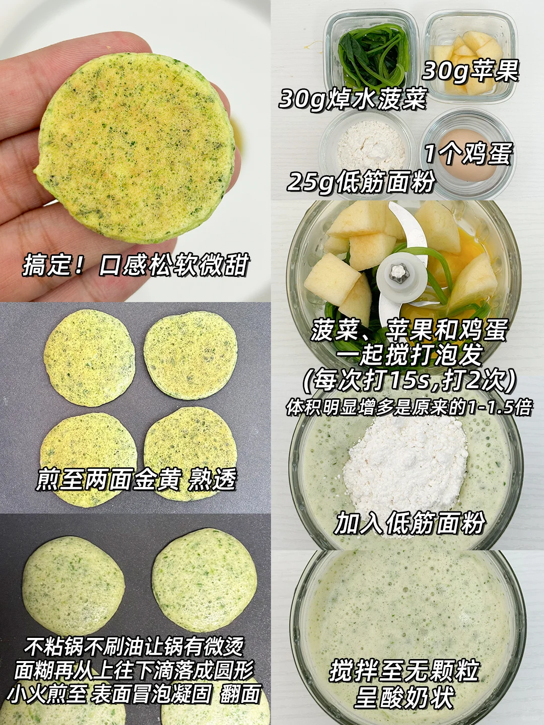 ▫️30g菠菜、 苹果30克、1个鸡蛋、25g低筋面粉
