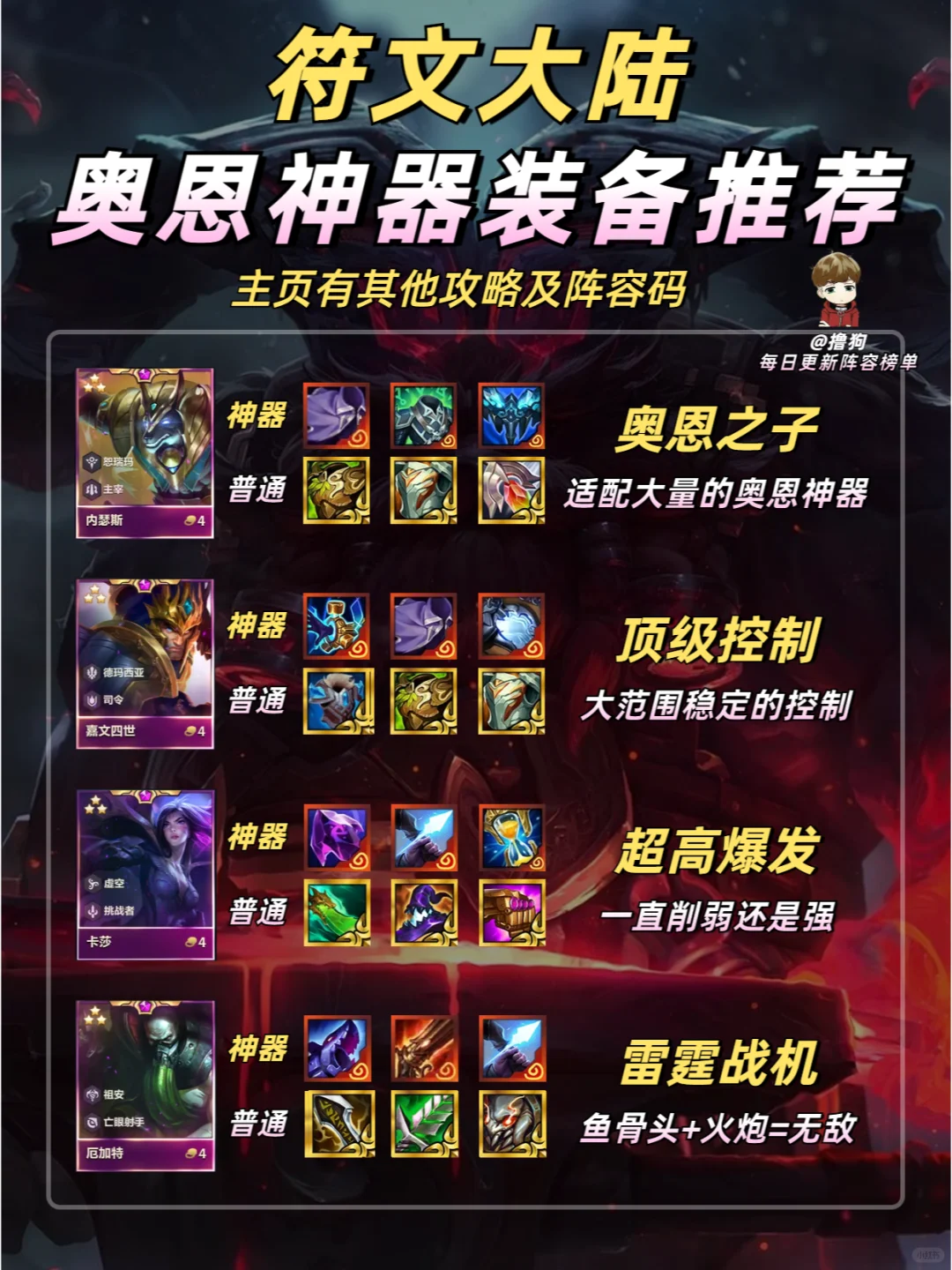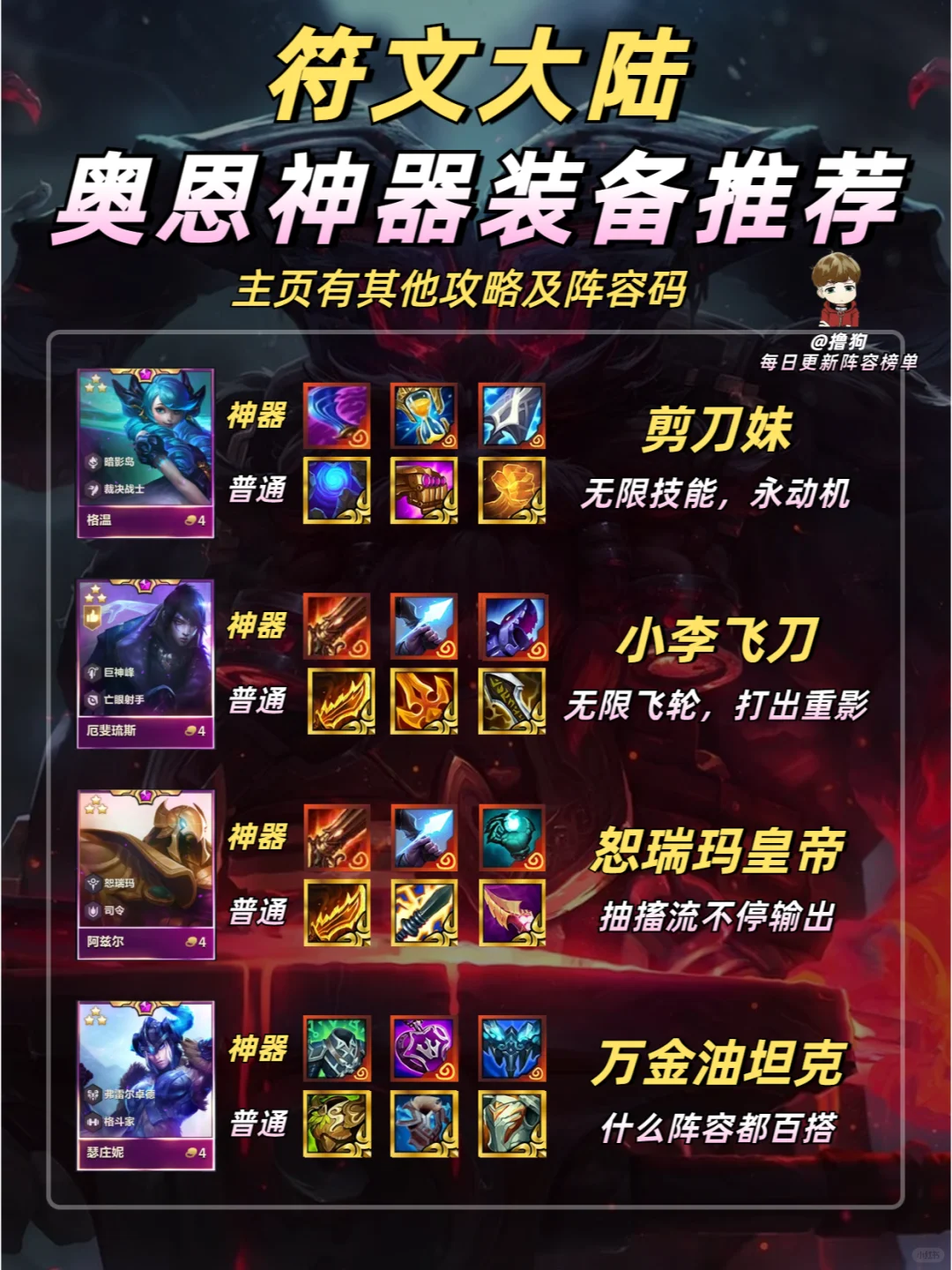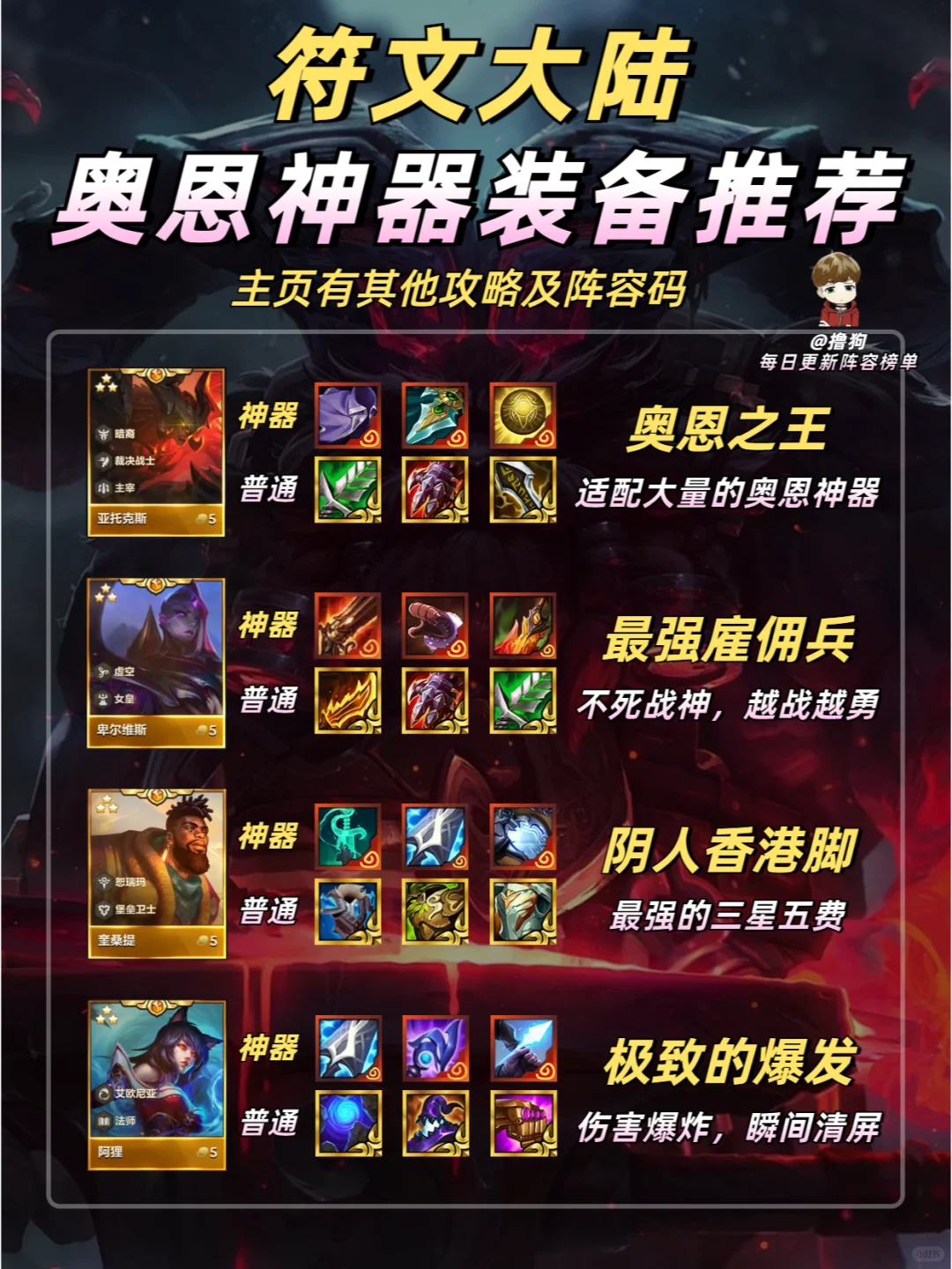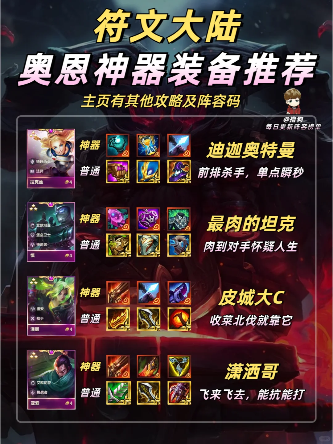 选对装备,胜率翻倍 快转发给你的小伙伴一起看看吧 ❗更多强势阵容及阵容码进笔记下方粉丝群