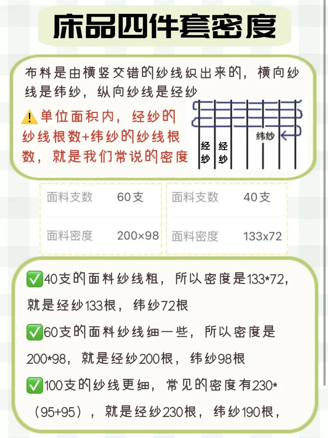 ✅床品四件套支数和密度的关系