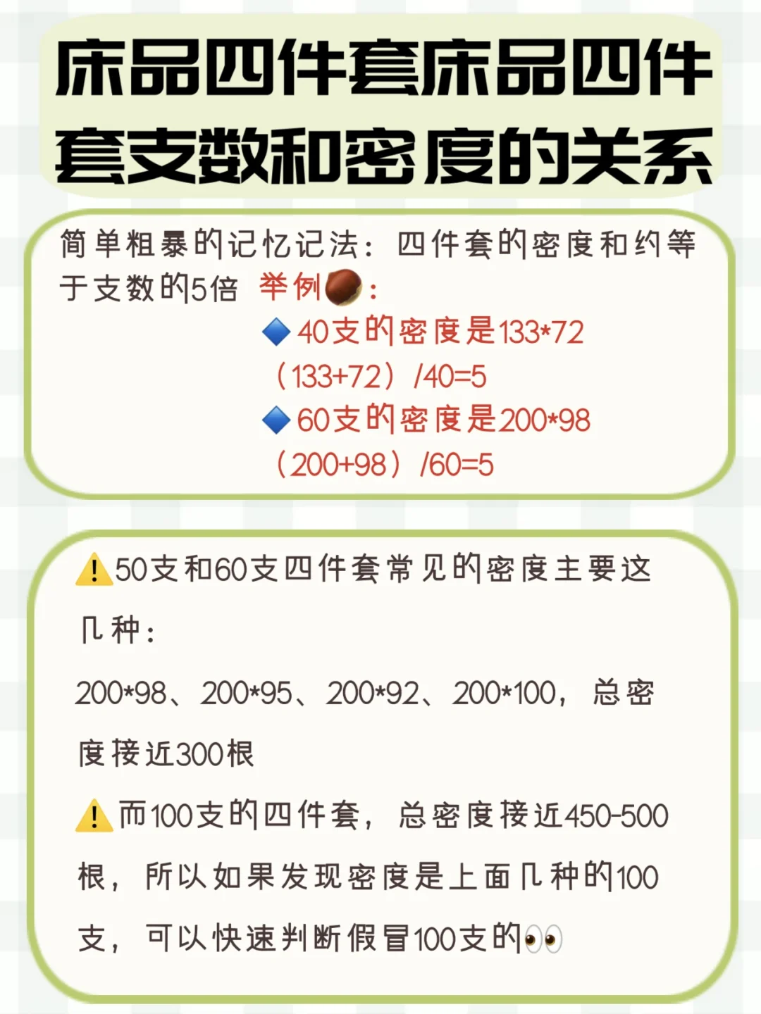 ⚠️50支和60支四件套常见的密度主要这几种:
