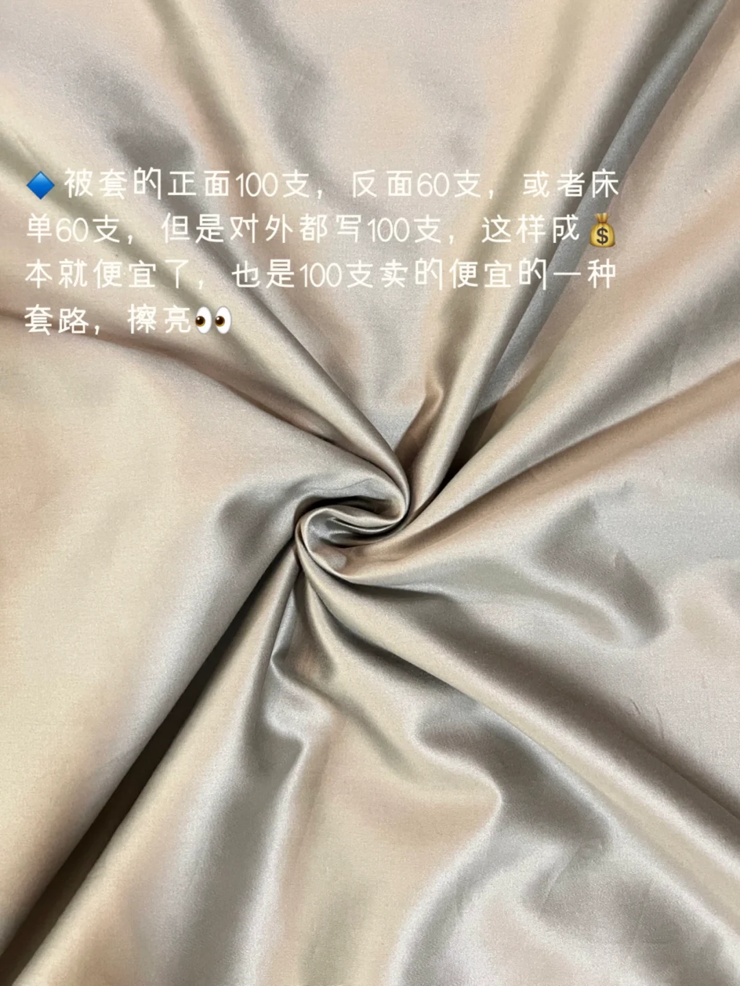 🔹被套的正面100支,反面60支,或者床单60支,但是对外都写100支,这样成💰本就便宜了,也是100支卖的便宜的一种套路