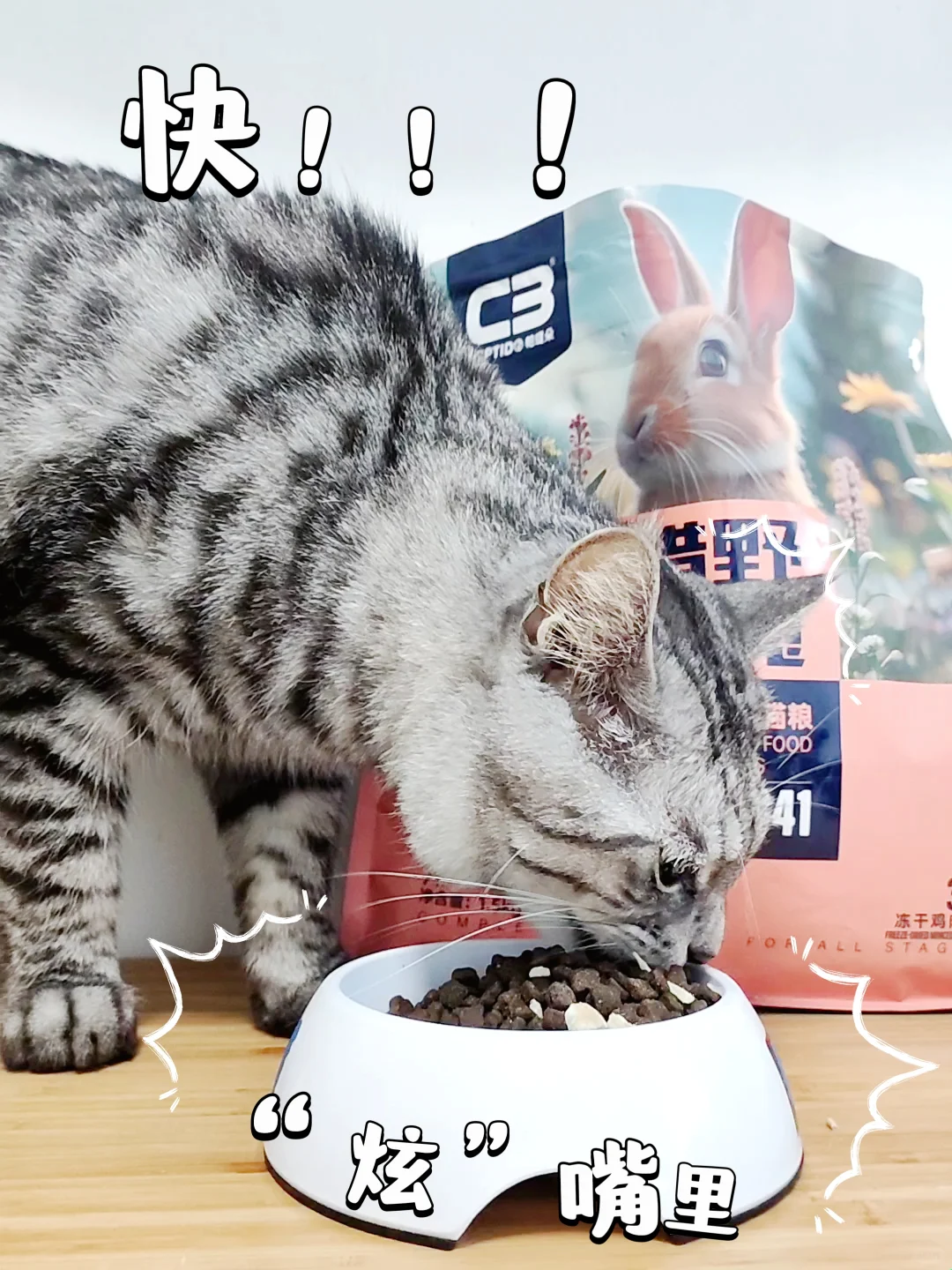 考虑到一种口味,怕毛孩子吃腻,最近喂养的是它家的C3帕缇朵猎野猫粮。