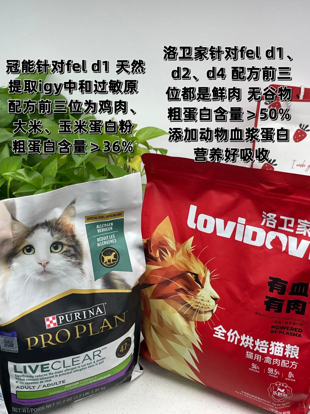 下面来对比一下市面上很火的两款减少过敏原的猫粮