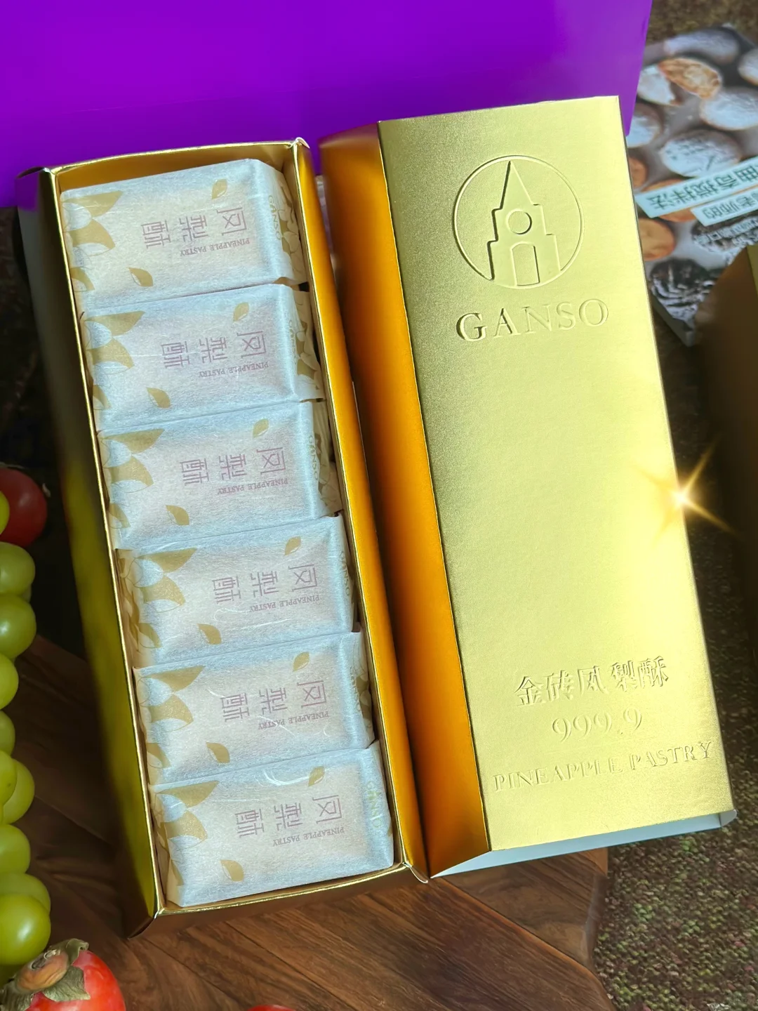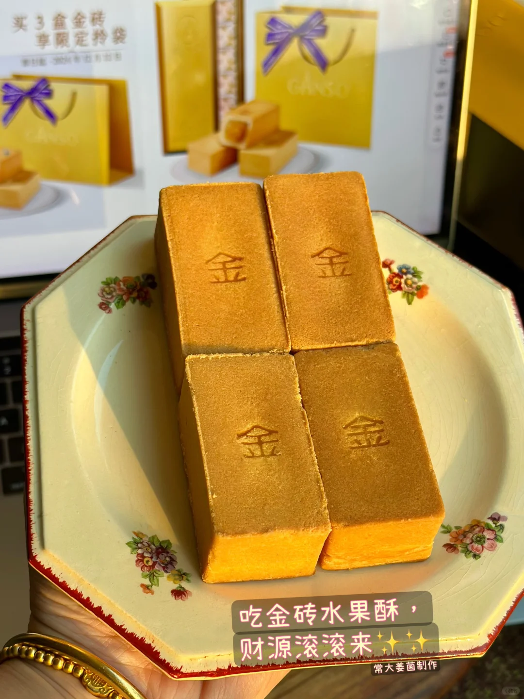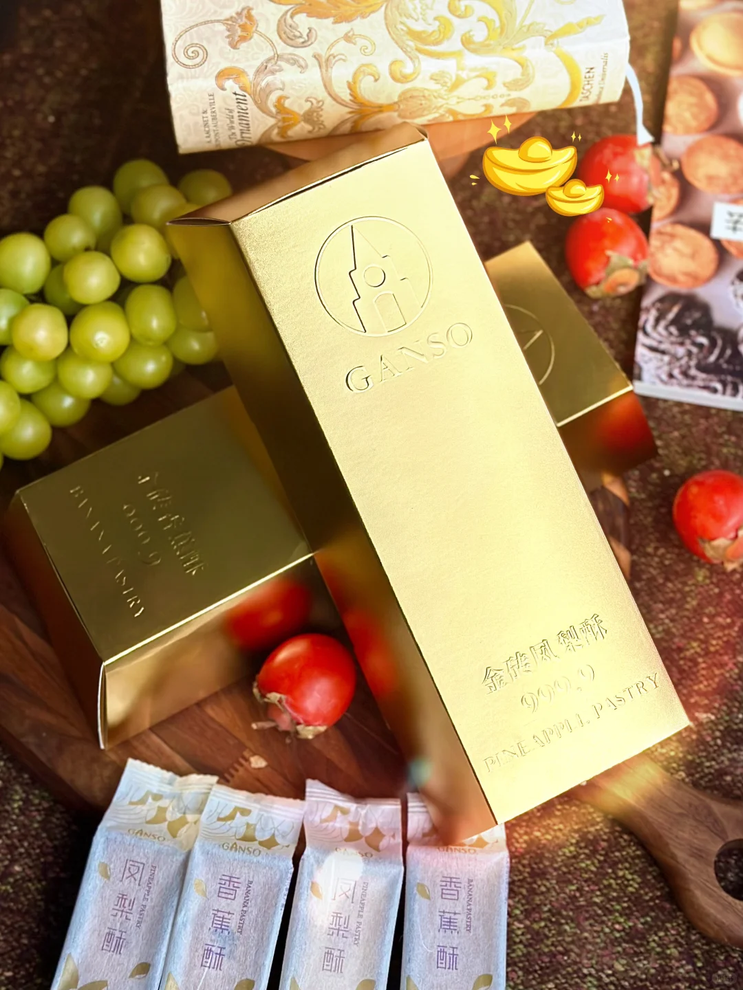 元祖金砖水果酥采用1:1的金砖造型,金光闪闪敲贵气