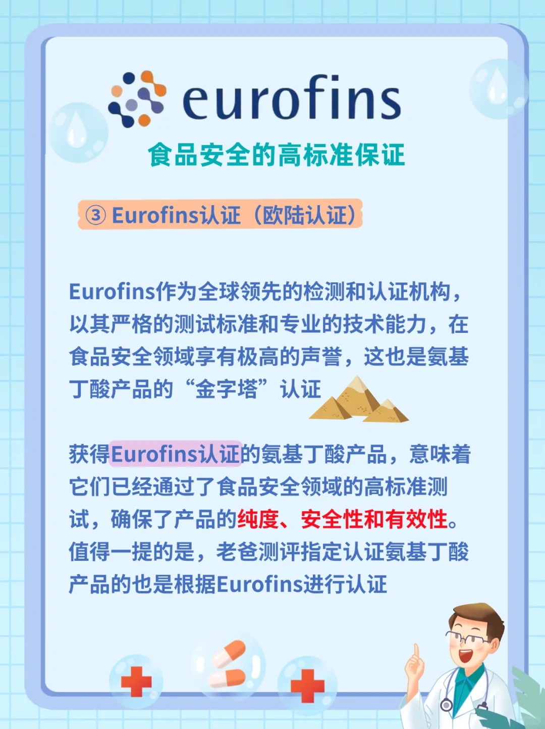 🟢获得Eurofins认证的氨基丁酸产品,意味着它们已经通过了食品安全领域的高标准测试,确保了产品的纯度、安全性和有效性👍👍👍值得一提的是,Eurofins还是老爸测评指定认证氨基丁酸产品的合作机构