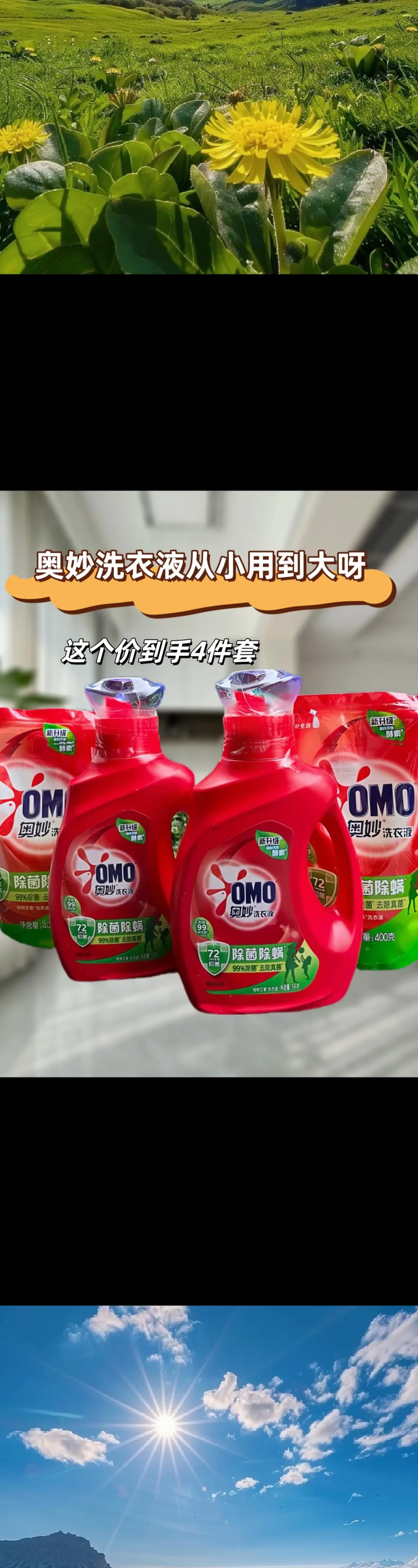 奥妙洗衣液的大羊毛赶紧薅!姐妹们,奥妙家的这个洗衣液真是从小用到大了,现在这个价到手4件,衣服上的污渍水果渍能轻松祛除,还有一股淡淡的植物清香,宝宝的衣服也能放心洗,刷到的赶紧拼手速!