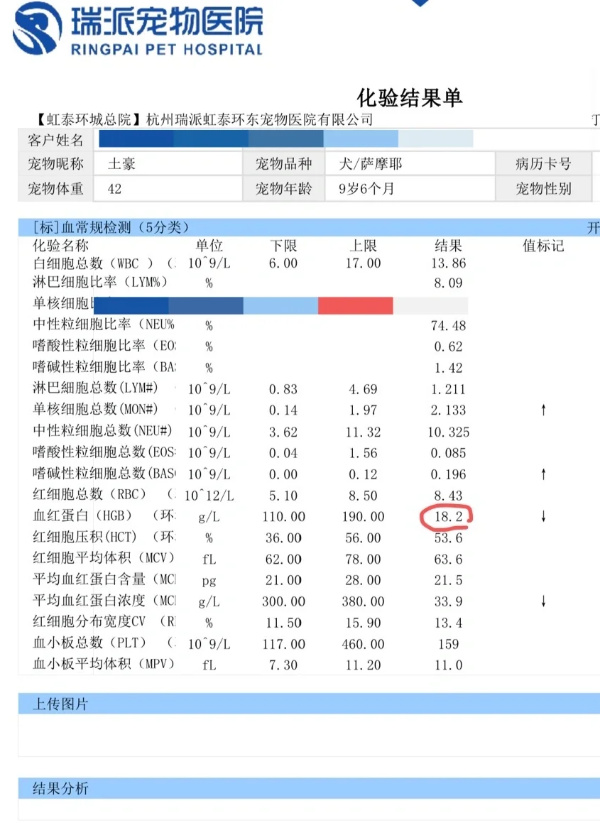 犹豫再三,还是决定给大家避雷,以前我们都在虹泰看病的,但是这次体验极差,可能是店大开始欺客了。 11月10我们小狗(土豪)眼睛出现分泌物,小便发黄,我问医院做什么检查,前台给我推荐了799的体检套餐,我带狗去了,医生上来就开了2000的检查项目,我说买了体检套餐,医生说检查报告当天出不来,很不想让我们用这个体检套餐,还说他的治疗费基本是需要2-3万的,这时候还没有检查,也没有出报告,后来同意用套餐了,但是医生不太情愿,还道德绑架,给我们感觉不花这个钱就是不善良不爱小狗,但是花钱治疗和明辨是非当冤种是两回事吧。 后来在我们催促下报告出来了,如图2,血红蛋白18,我们吓坏了,医生看似很负责的给我们打了电话,实际上也没说啥,都是自己就能看懂的,也没有说出具体的治疗方案,总之虹泰三个医生看过报告都没看出问题,我请问,这个血红蛋白指数不是重要的参考指标吗?医生的专业性在哪里?后来医生给开了1000左右的药品,没有诊断出具体是什么病,只是根据症状开了药,说最好去他们那里住院治疗。 第二天,我因为不放心辗转别的医院,报告如图3,血红蛋白191,医生说前一天的报告一定是有问题的,这么低的数值狗狗可能已经不能动了,除此之外排查了勾端、巴贝斯等虫病,当天很快出结果,价格也正常,医生给我们推荐了几款不是很贵的药让我们自己去买。 目前小狗已经褪黄,正在休养康复中,虹泰以后避雷了,现在不负责任的医生太多了,从我们选择用体检套餐开始,医生就明显敷衍了起来,最后检查报告错了也只是说了句不好意思,没有说重新做检查或者退掉生化的费用,只是淡淡说了下检查报告多了个小数点,打错了,万一我没有重新检查呢?万一我按照这个检查报告给小狗开药输液了,我不是会失去他吗?想想很后怕,顺便一说,虹泰同等的体检项目在活动期间也是比别家贵了近一倍的,难道不应该有更好的服务和体验感吗?检查报告出来三四个医生护士看了都没觉得有任何问题吗?宠物主在他们眼里都是人傻钱多大冤种吧,小猫小狗在他们眼里也只是赚钱目标并不是鲜活的生命