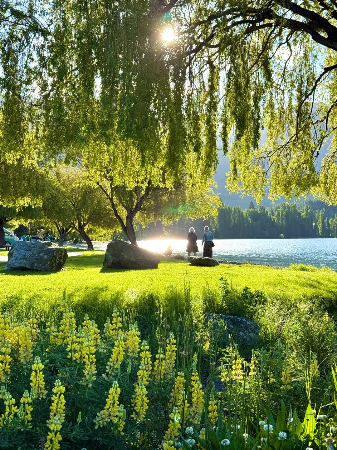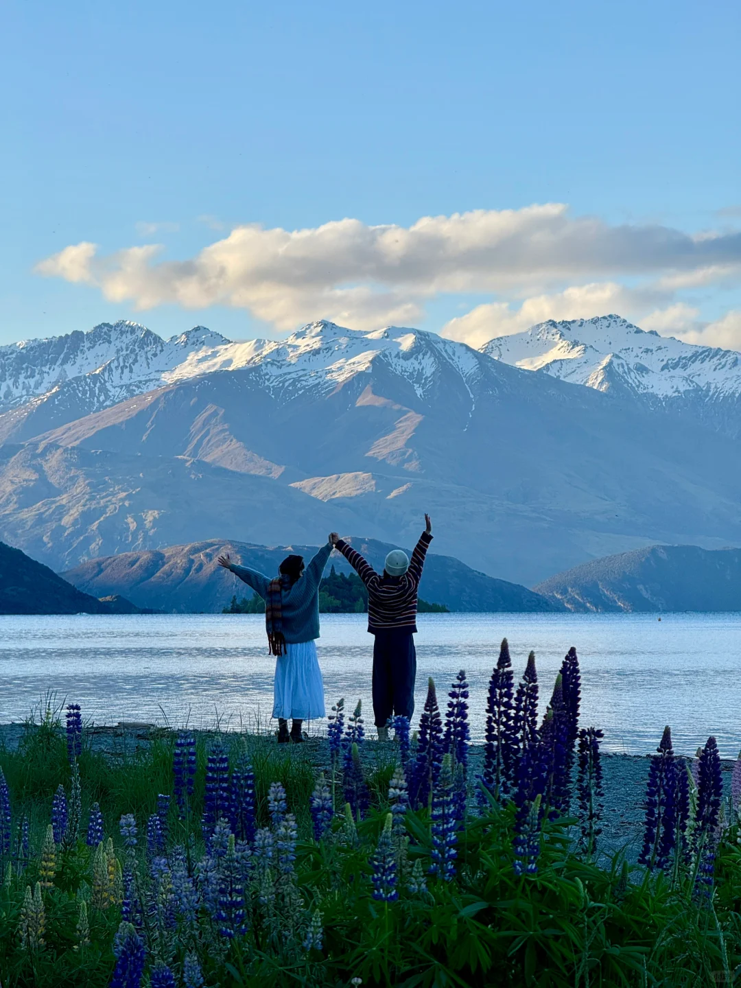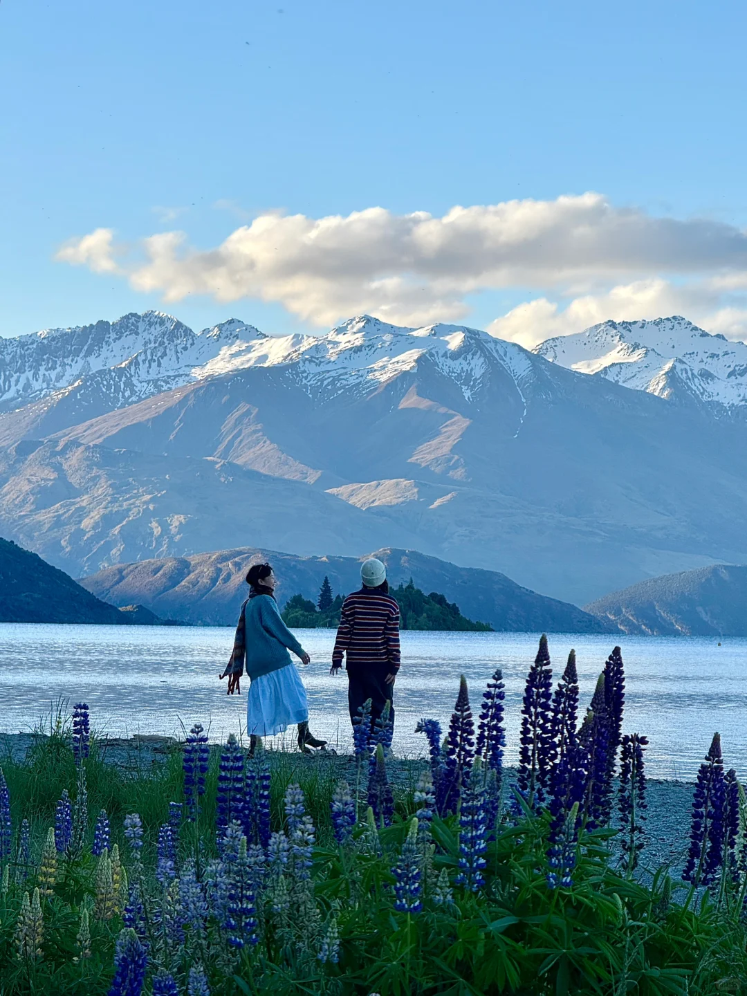 1️⃣孤独的树右边100米左右的湖边,有盛开的鲁冰花为前景