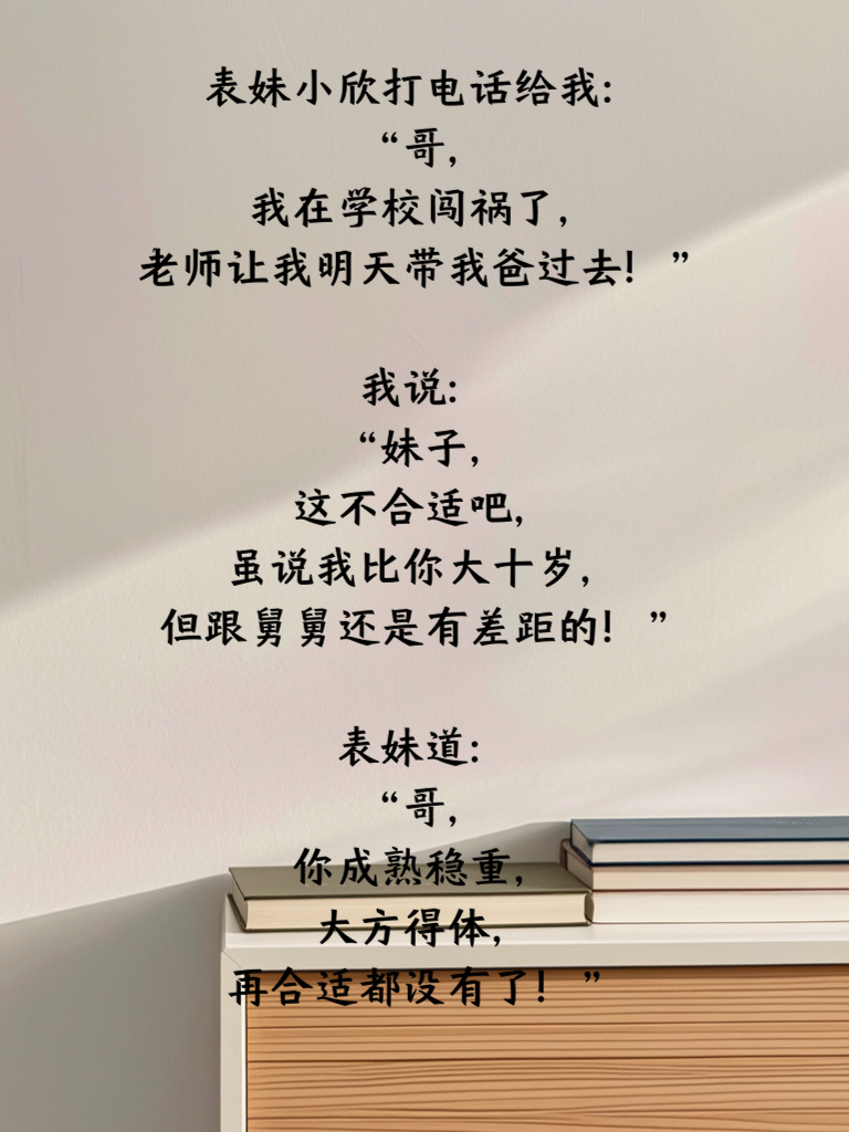 我有个小姨,只比我大几岁,有次我和小姨手挽手上街,结果被路过的班主任发现了,回去