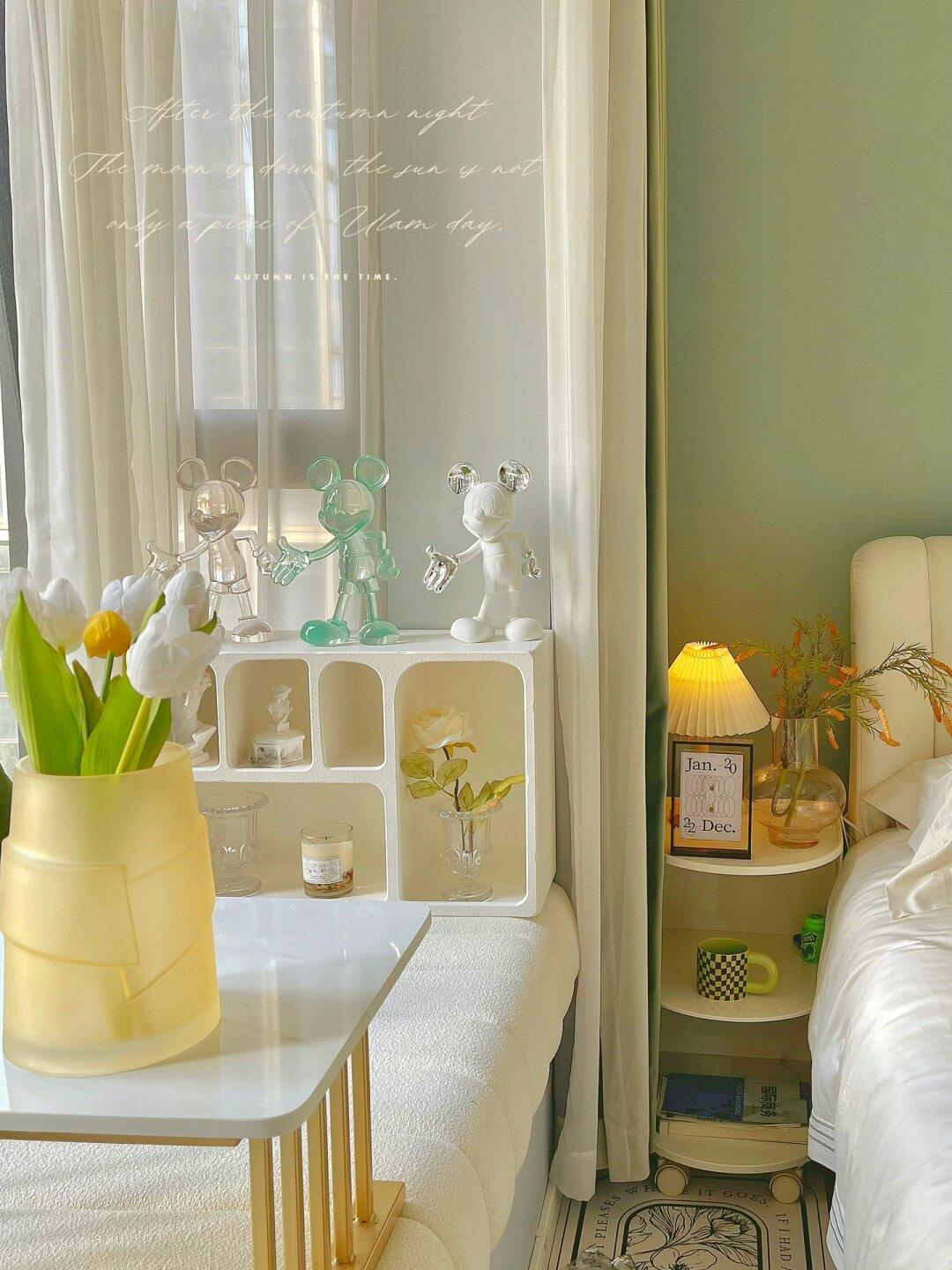 一眼就沦陷我的夏日清新小卧室 炎热的夏天这一抹绿像绿豆冰棍儿一样,清爽又解腻~这次带来了一些你们卧室常问的,快跟我一起来看看吧