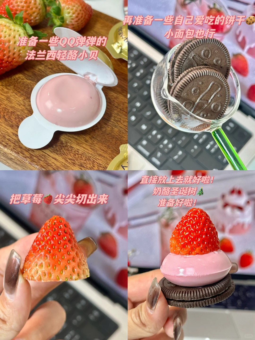 🍓准备食材:饼干、法兰希轻酪小贝、草莓