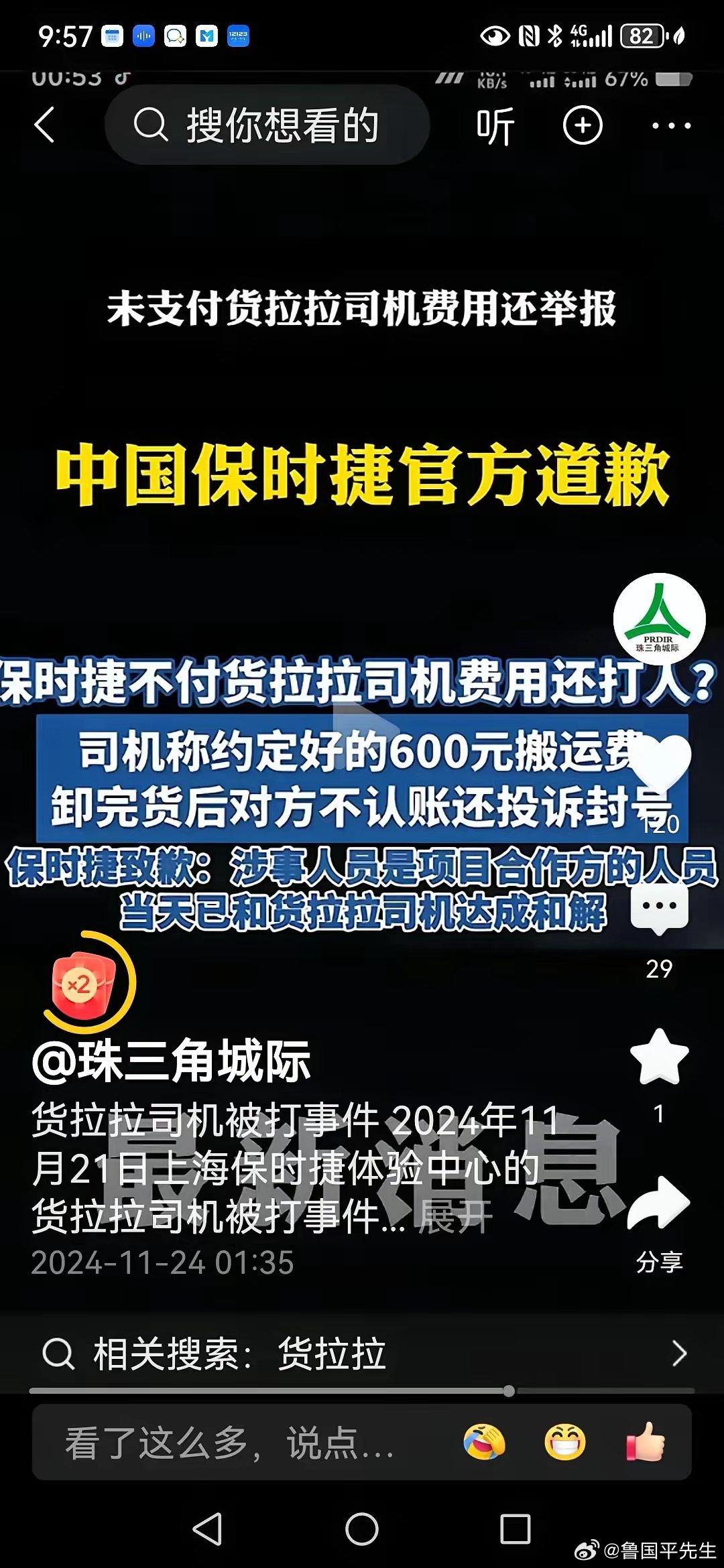 反观上海货拉拉司机遭受不公平事件,在网络发酵后,反而是保时捷公司率先高调道歉,第三方当天发布说明并道歉,当事人也积极与司机和解。