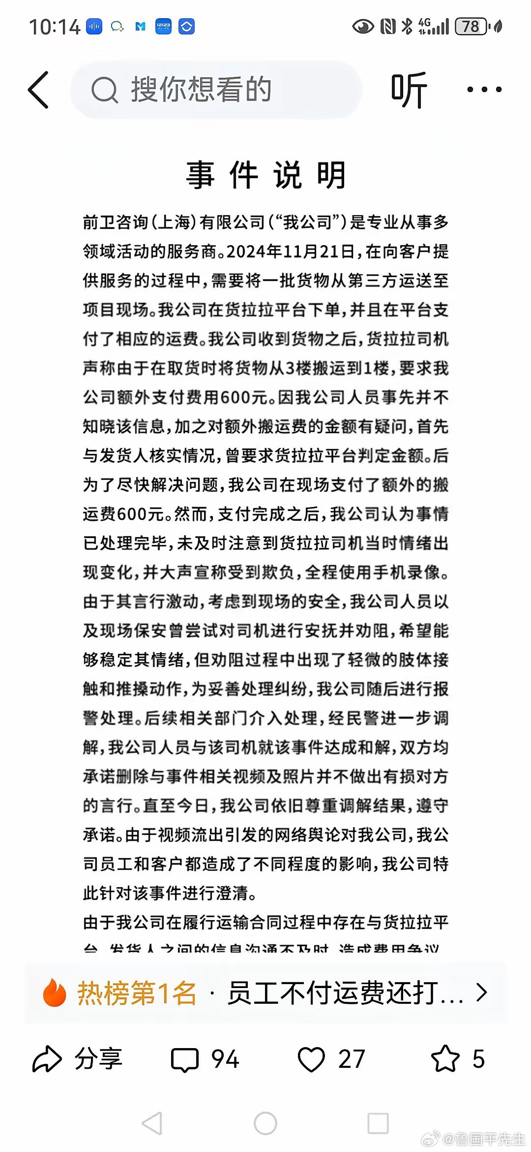 而此时的货拉拉平台,一个屁也不放。
