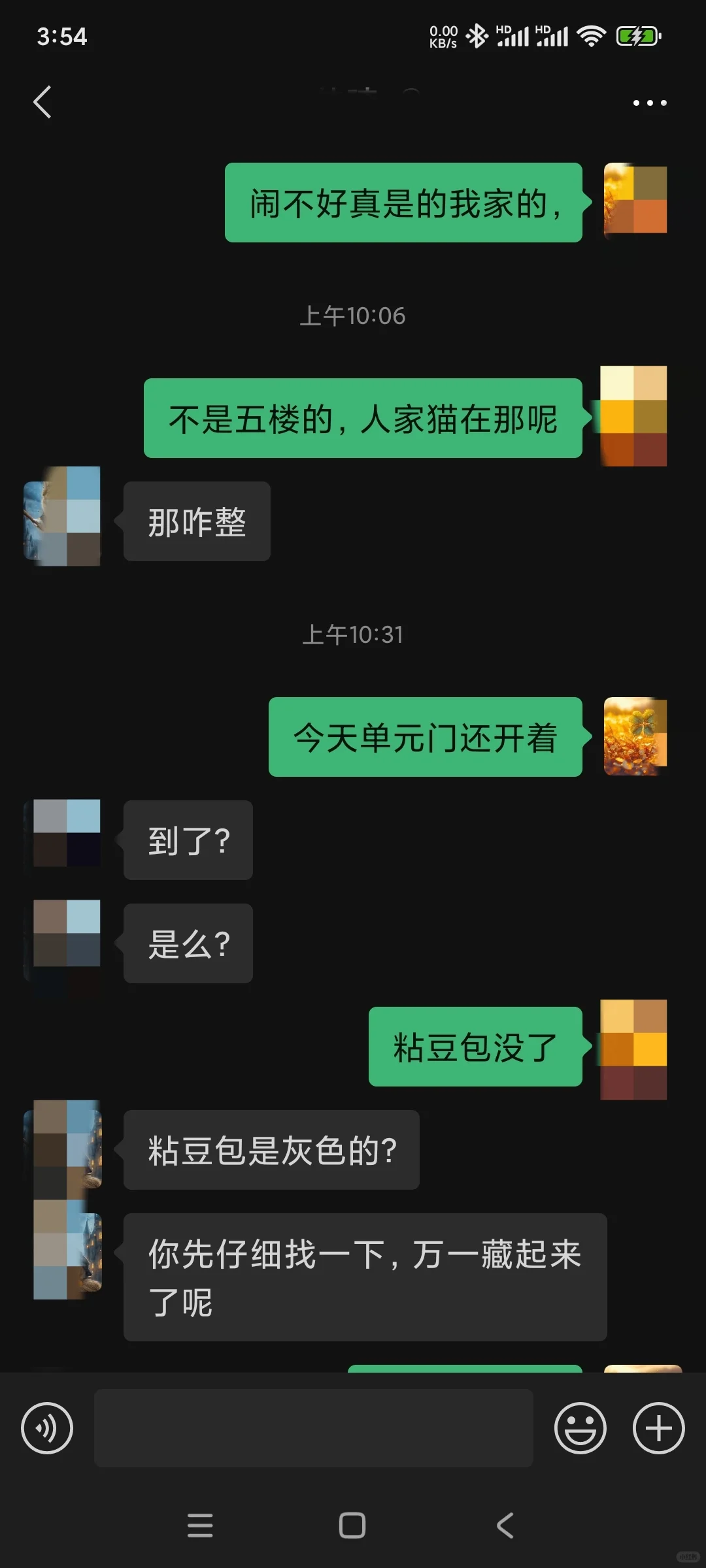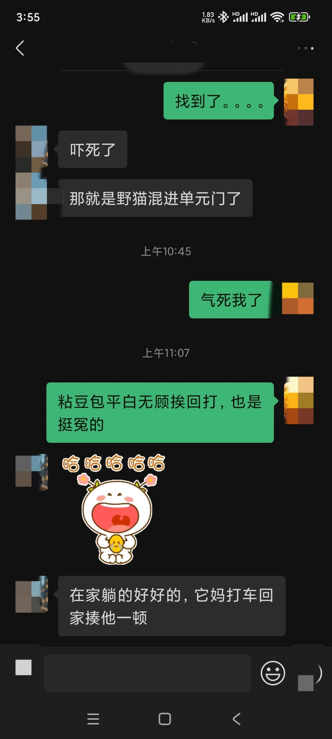 [大笑R]好消息是猫没有丢,[抓狂R]坏消息是粘豆包挨了一顿揍。