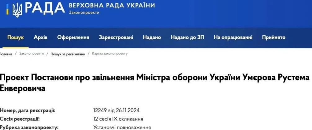 根据消息,乌克兰最高拉达将考虑国防部长乌梅罗夫被迫辞职的问题