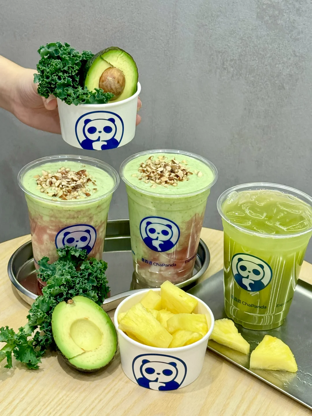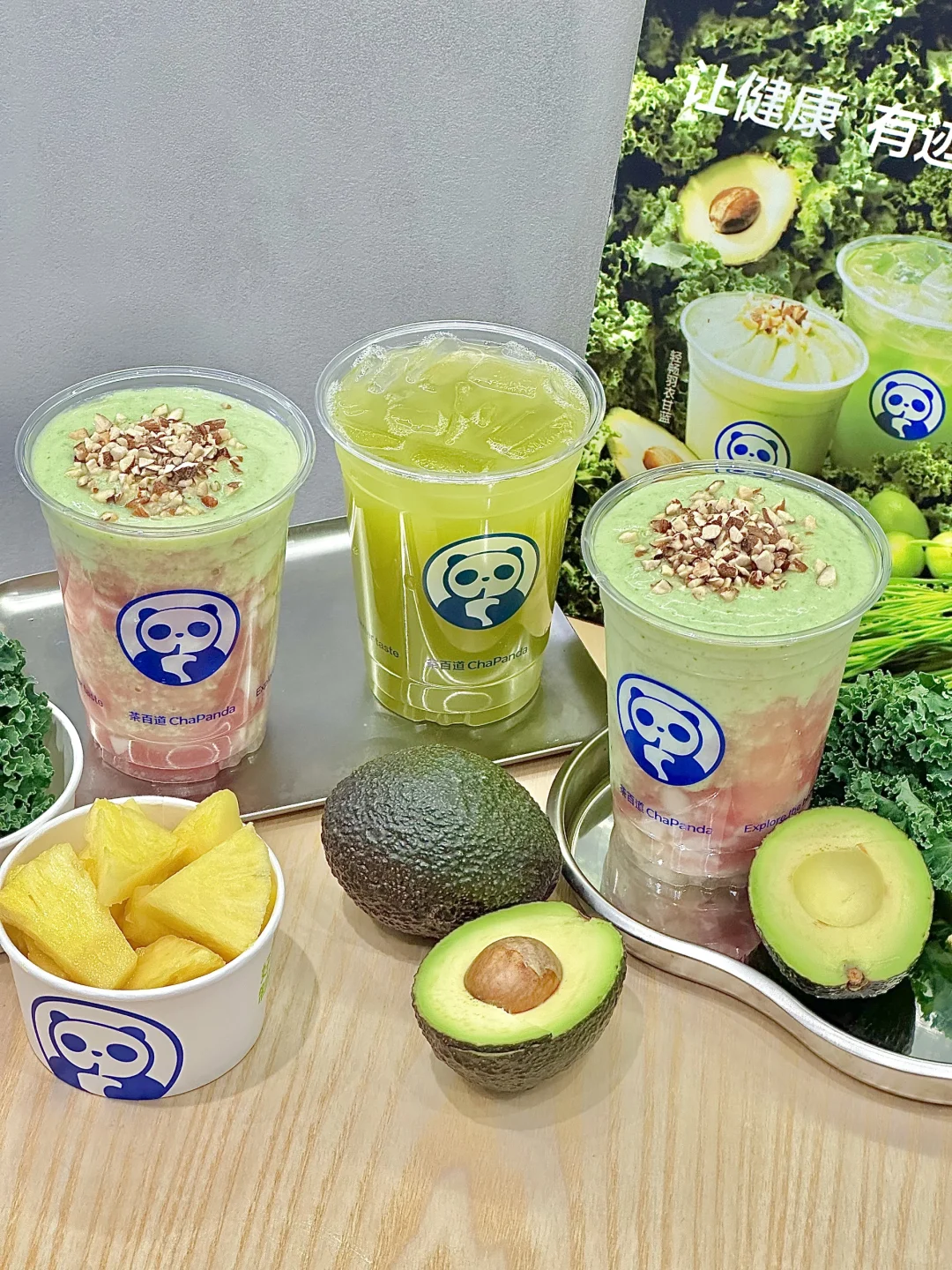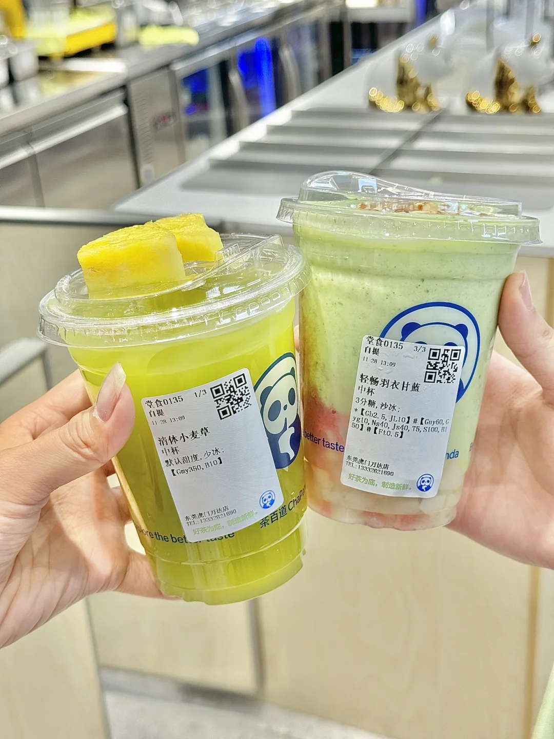 茶百道!果蔬茶的赛道你算是闯进去了!! 简直就是打工人的“绿色健康充电宝”👍 纯纯一大杯蔬果全部鲜榨~ - 🍃清体小麦草 新鲜小麦草+苹果+凤梨+阳光玫瑰肉+七窨茉香雪芽茶底 不添加浓缩汁,都是新鲜蔬果现榨~ 没有额外蔗糖,甜味完全来自蔬果本身 口感清爽鲜甜,满满的叶绿素!打工人熬夜垮脸必备! - 🥬轻畅羽衣甘蓝 现榨羽衣甘蓝+牛油果+活菌酸奶+椰子乳+芭乐果肉+扁桃仁碎 满杯蔬果香气!还能吃到扁桃仁🌰碎碎!一口爱上🤩 高膳食纤维低GI,饱腹感max! 一杯252kcal左右,低卡饱腹不愧是小蛮腰的天菜! - 建议所有打工人把奶茶🧋换成这杯!在广东也能实现吃草自由啦