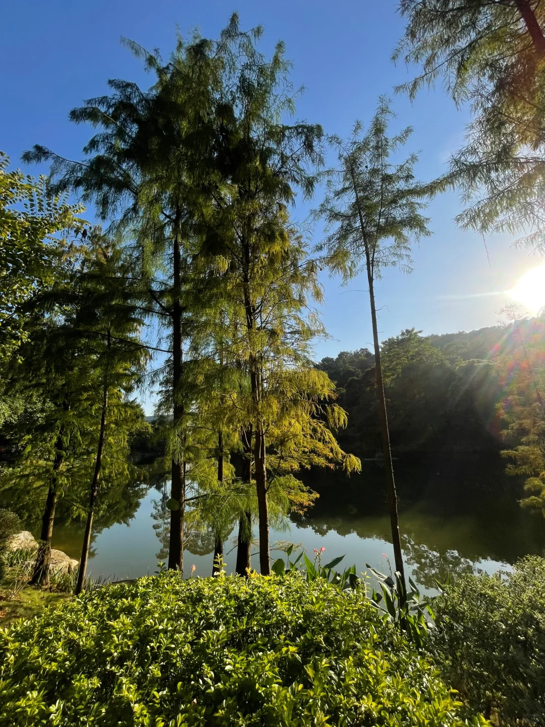秋天有落羽杉不过现在落羽杉还是绿色但是落日也好美呀