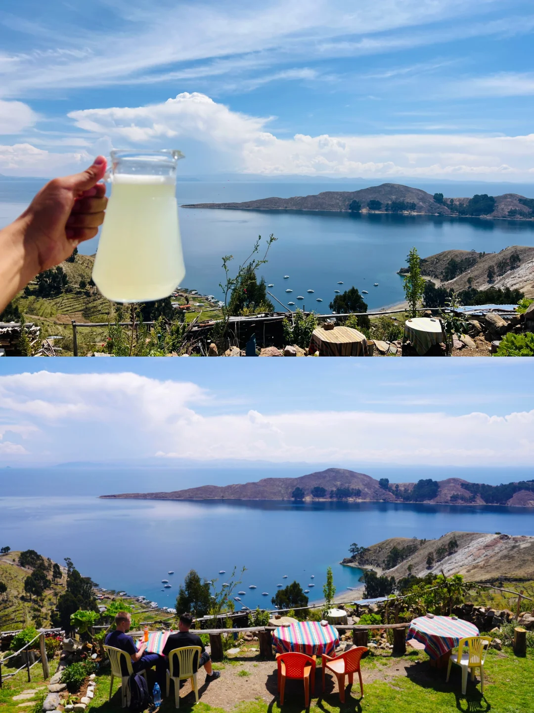 玻利维亚太阳岛Isla Del Sol,距离最近的城镇Copacabana也需要乘船两个小时才能到达。 岛上的印第安人(主要是丘克亚和艾玛拉人)过着相对自给自足,与世隔绝的生活。岛上至今没有手机信号,也没有公路,唯一的交通工具只能是步行。 对于游客的到来他们热情欢迎,却并不贪婪,似乎还没学会如何宰客。 我们爬到山顶,走进了一家观景效果最好的餐厅,可以俯瞰整个的的喀喀湖东侧,一杯咖啡才人民币3元,一杯柠檬水7元(以为是一杯,结果端上来是一扎) 在美洲旅行总是被刺客,来到玻利维亚如此淳朴的地方竟有些不习惯,不知道这样淳朴的民风还能持续多久?