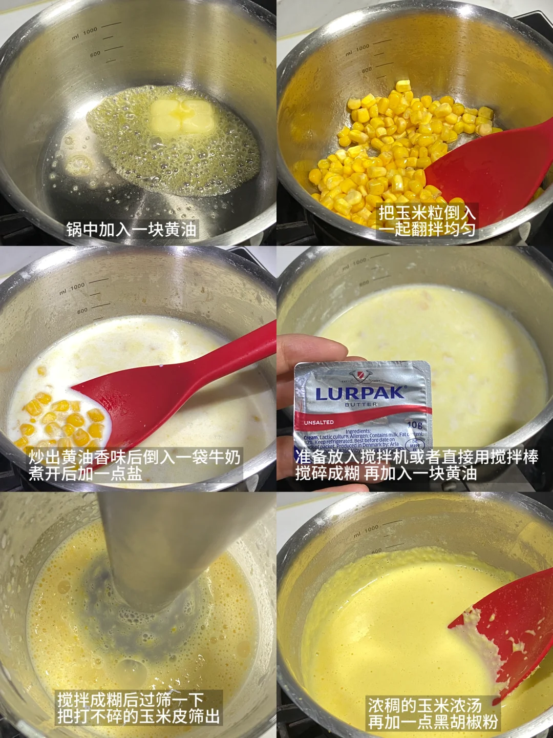 黄油|玉米粒|牛奶|盐|胡椒粉