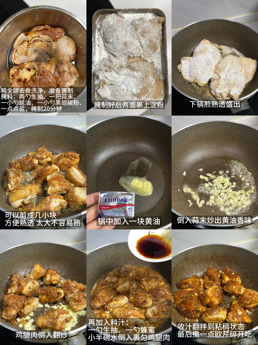 鸡全腿2个|黄油|腌料|蜂蜜|蒜末