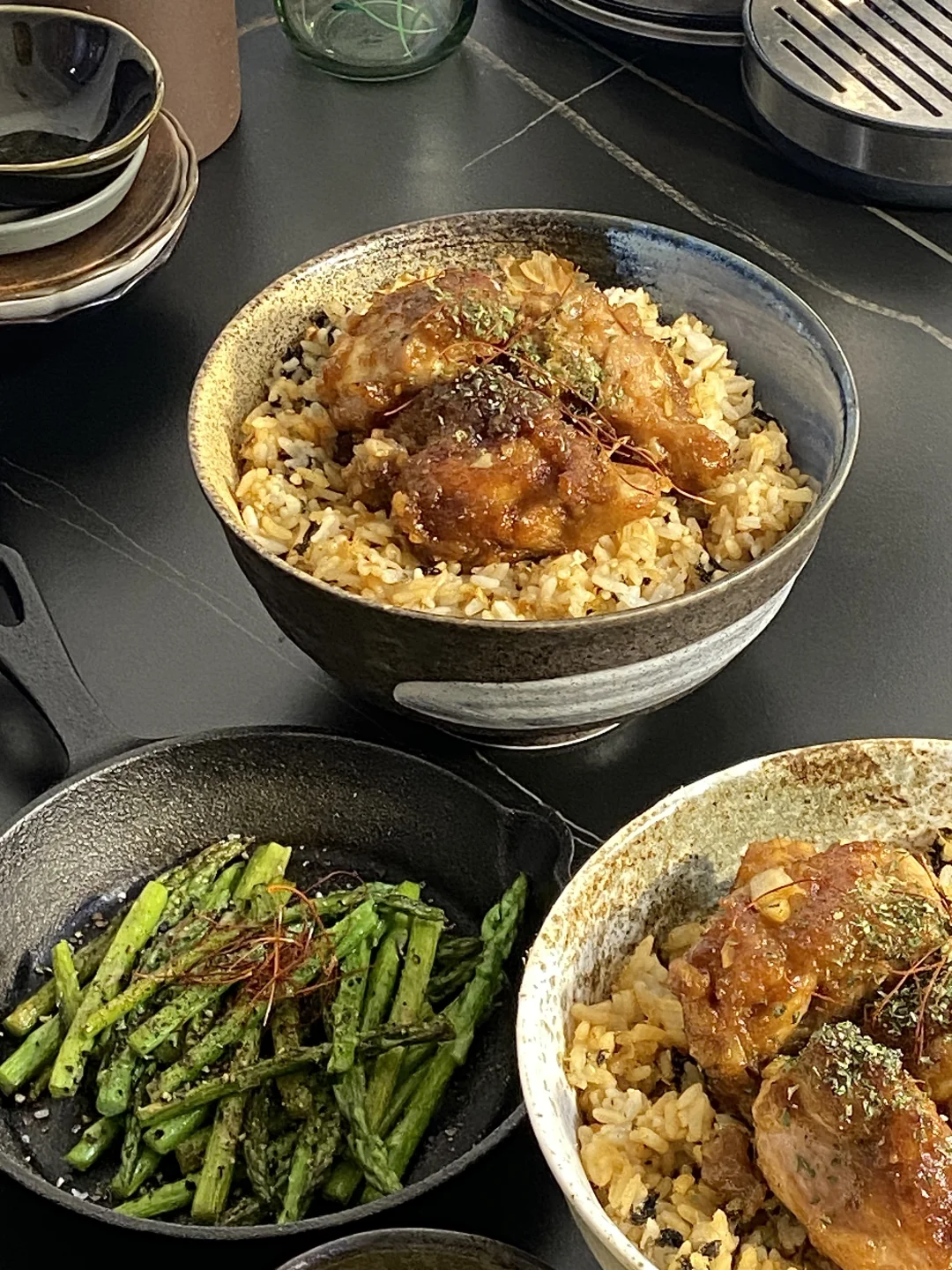 简单的黄油解决今天这一顿美味,黄油融化在热腾腾的米饭里,撒上海苔和肉松简直是绝配,再来上一口蒜香黄油鸡,满意!今天的食谱如下: