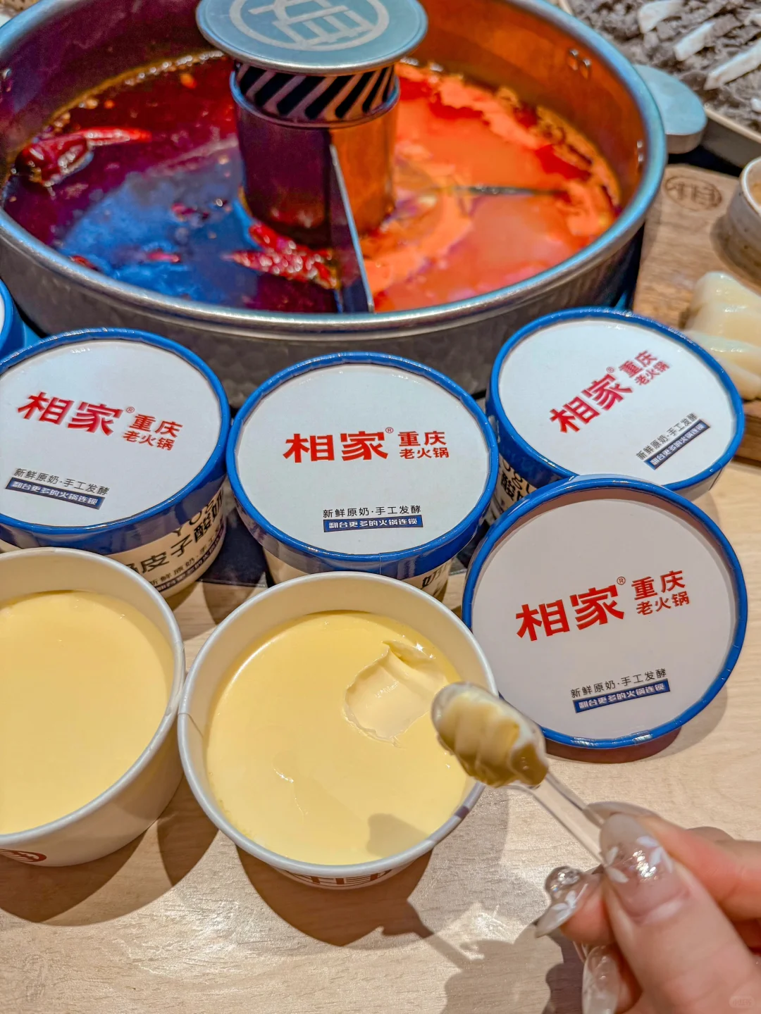 保定的宝子们又有口福啦🚂不用奔赴北京,在保定就能吃到正宗的奶皮子酸奶! 到底是谁发明的奶皮子酸奶啊🥛纯手工制作,奶香浓郁超丝滑🍮上层的奶皮子像一层奶酪盖在酸奶上,吃起来有浓郁的奶香味口感醇厚;下层的酸奶细腻丝滑,酸甜可口 🛒果断打包带走 冷吃年糕,糯叽叽星人的本命美食 🍡弹性十足,红糖➕豆粉🉑一次尝试两种口味 当然相家火锅本身的锅底与涮品也毫不逊色🥩丰富的菜品🌶️搭配特色蘸料,热辣鲜香,不愧是咱保定的翻台王🍲