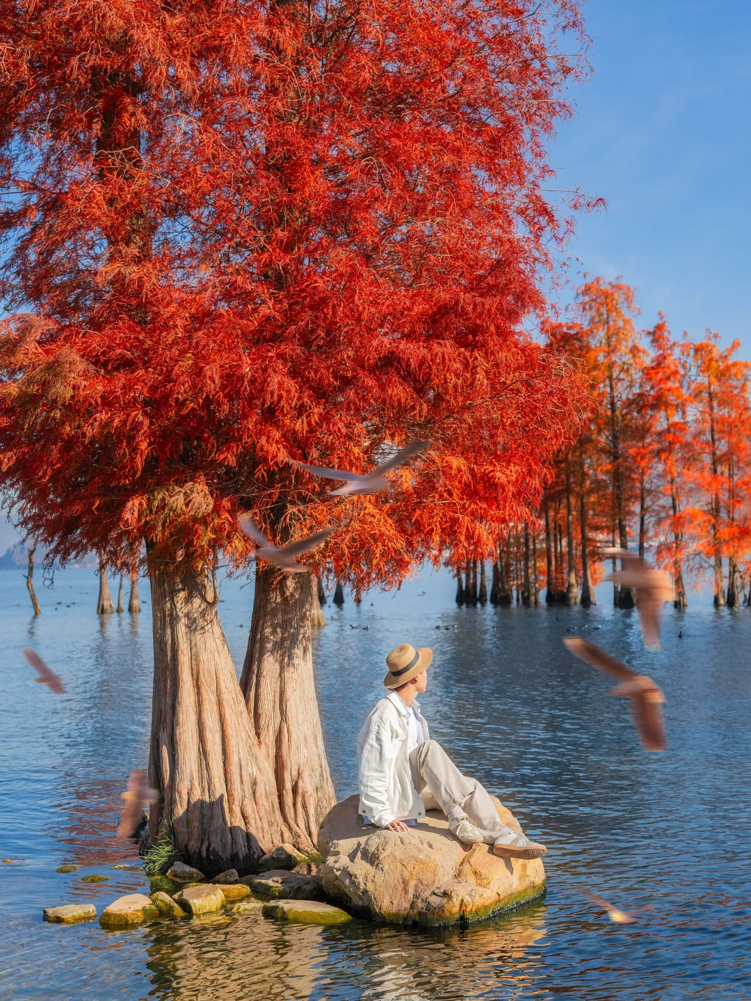 👉秋冬有红杉樱花和海鸥,拍照真的好看