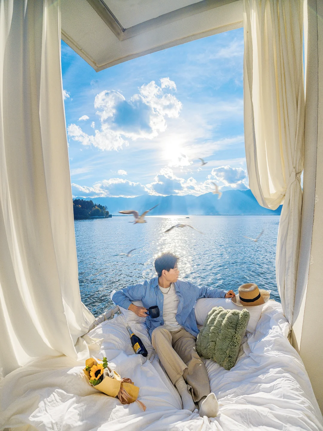 📍机位3:房间的窗户正对洱海