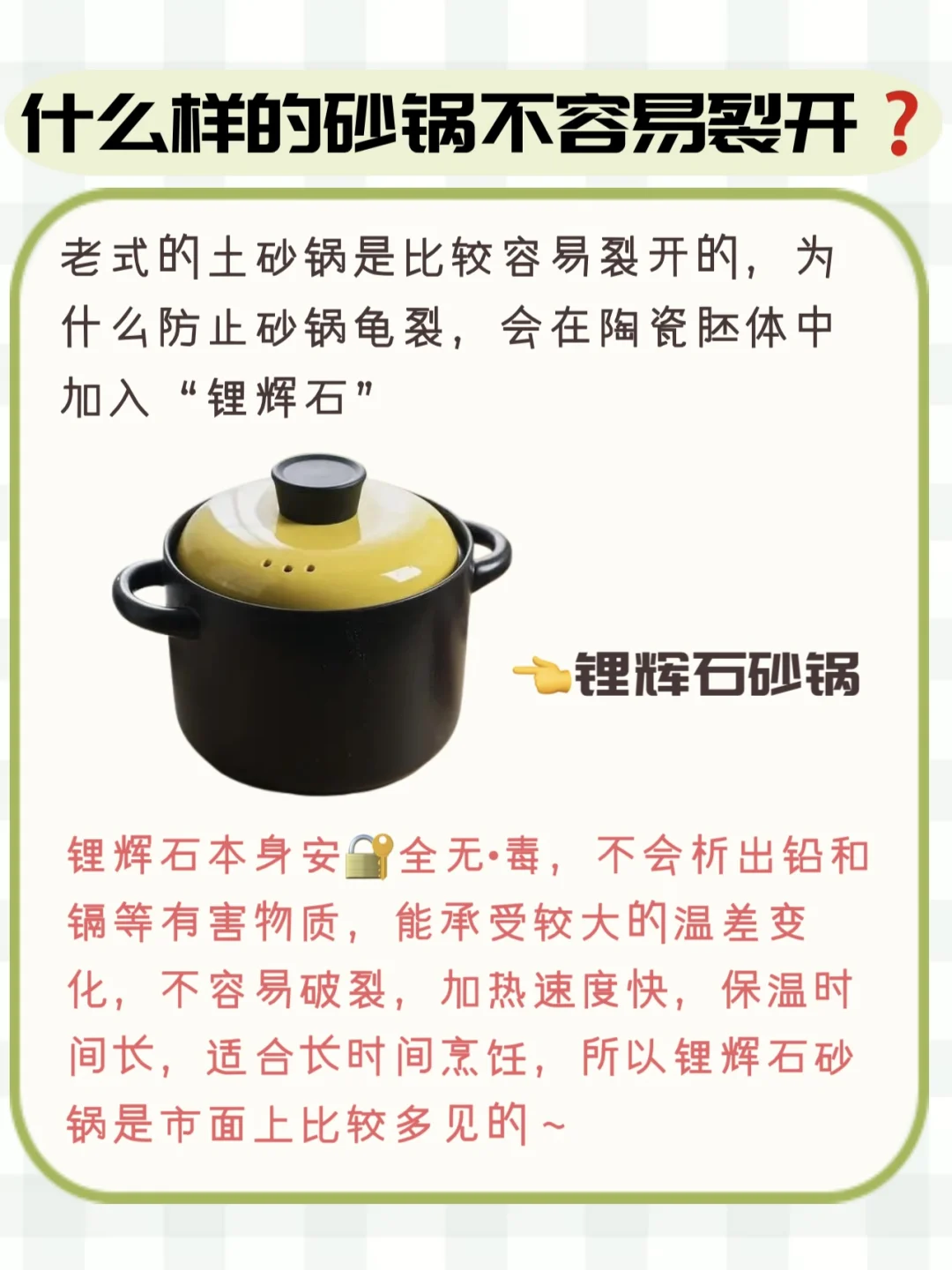 老式的土砂锅是比较容易裂开的,为什么防止砂锅龟裂,会在陶瓷胚体中加入“锂辉石”