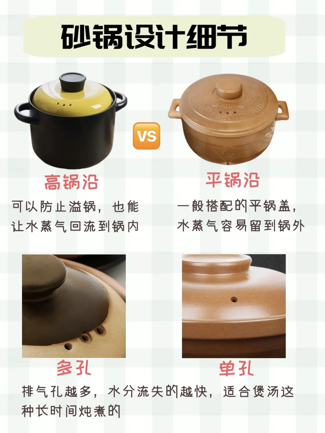 🔹肚大口小👉煲汤砂锅,锅很深容量大,不容易溢出来也能很好的储存水分,适合煲汤、炖肉